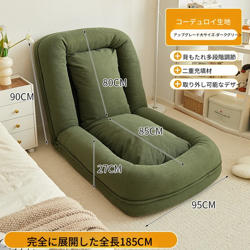 アップグレード大号-加厚新款【展開185CM*95CM】肌触りの良いコーデュロイ生地-ダークグリーン【背もたれ+クッション付き】