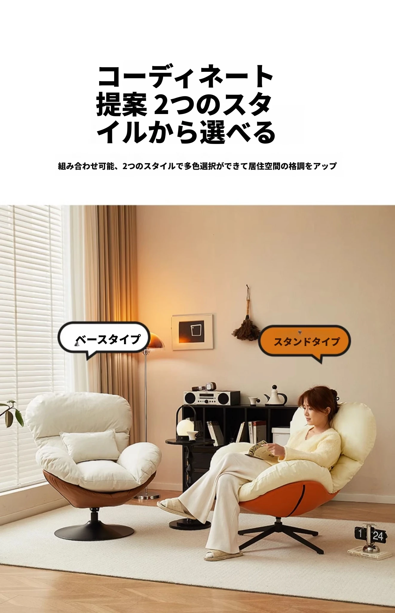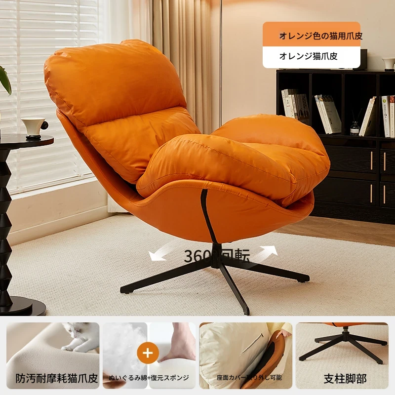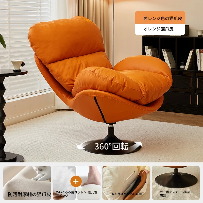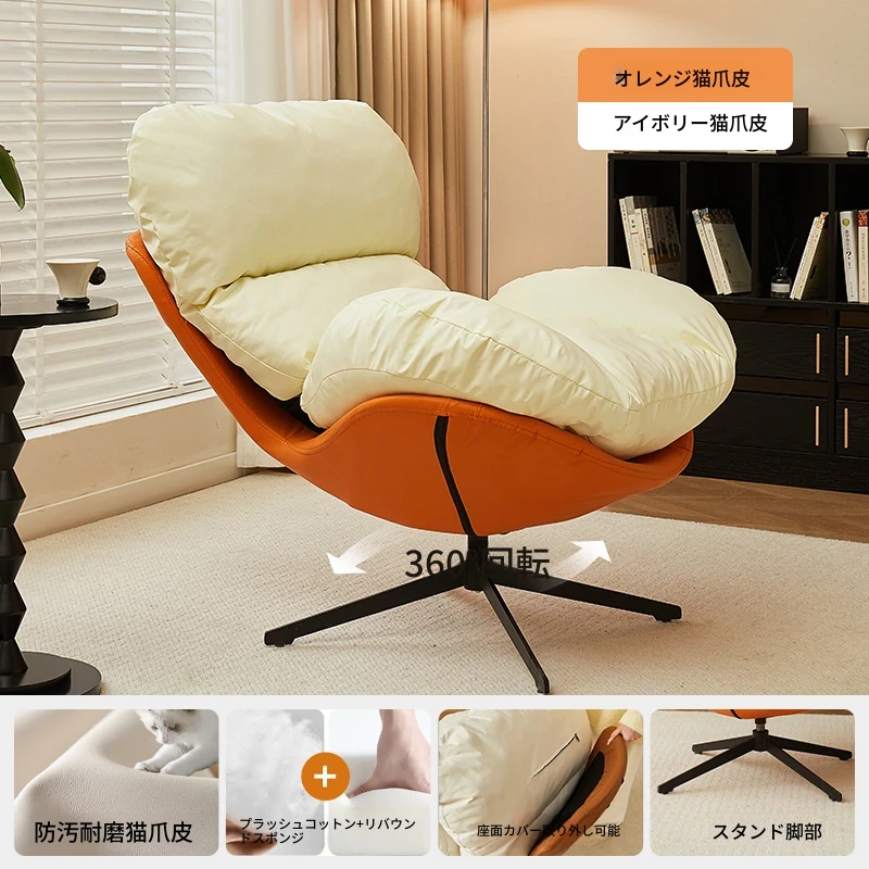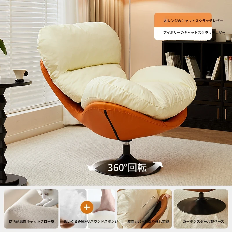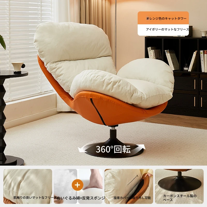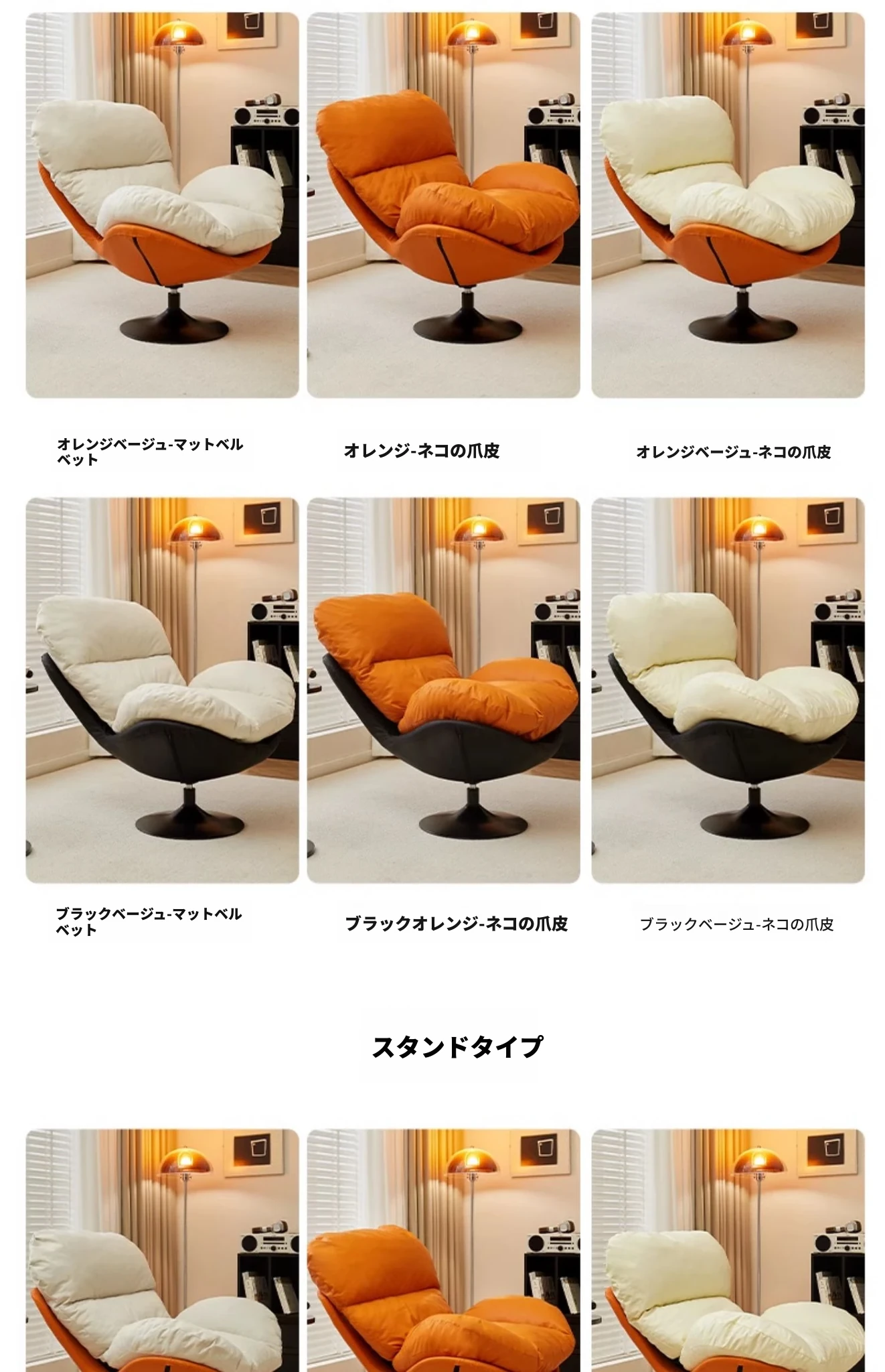 【オレンジ】米白色マットフロッキー-アップグレード版ブラックスタンド(回転可能+厚手クッション+雲のような座り心地)