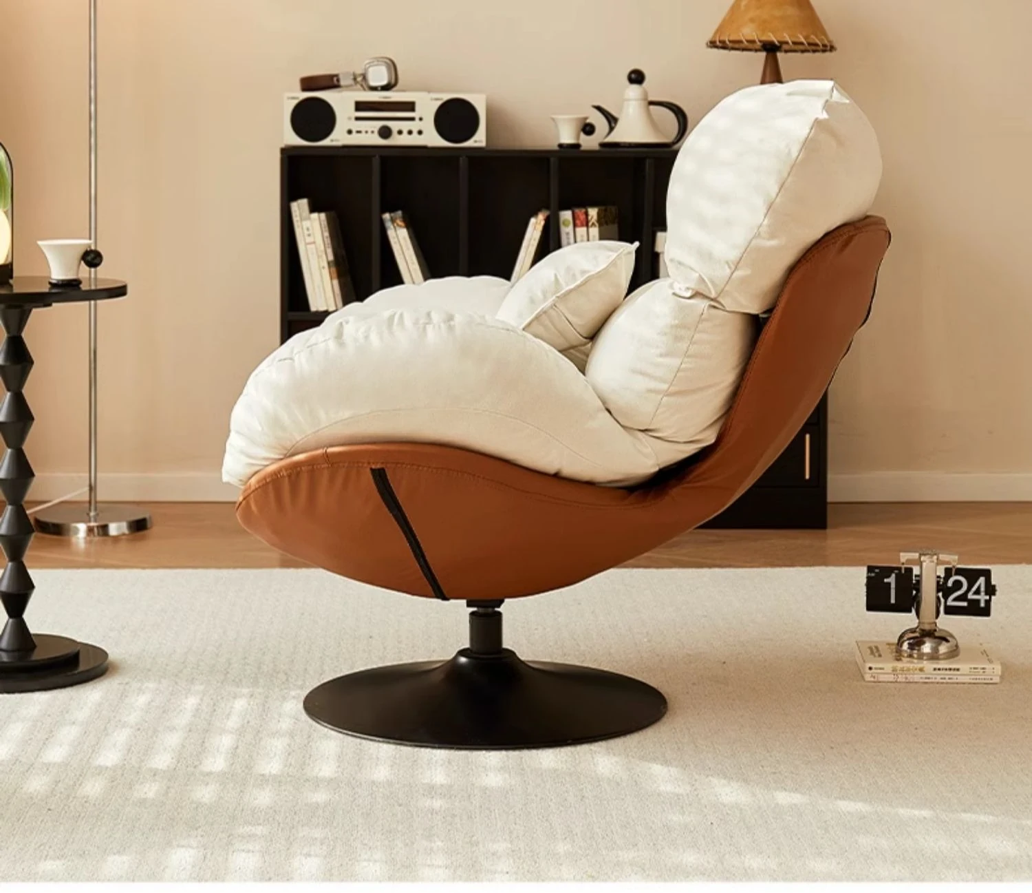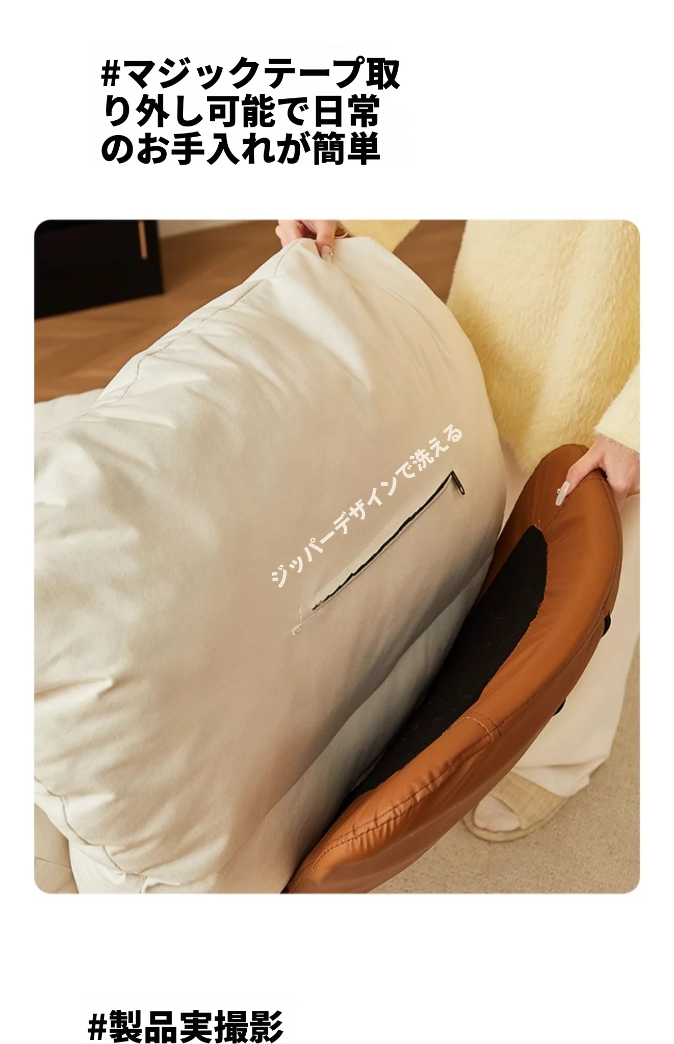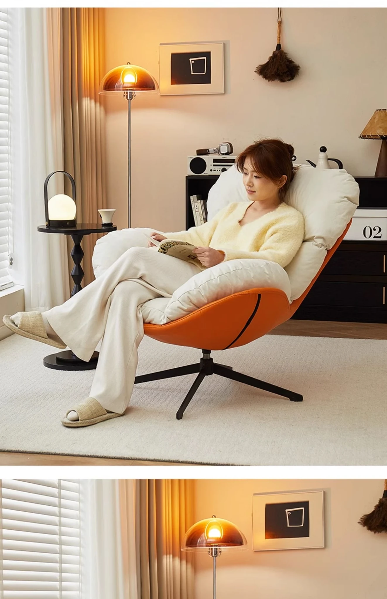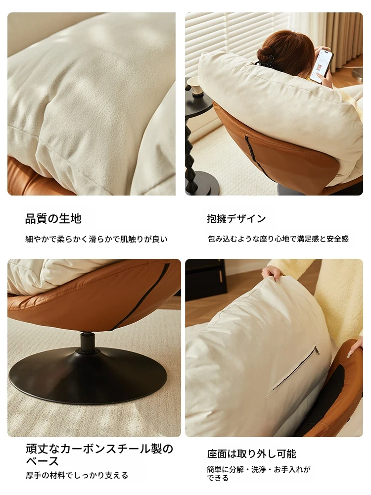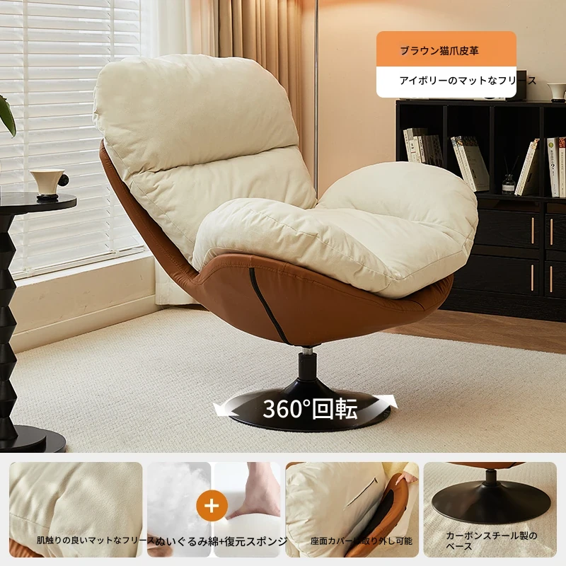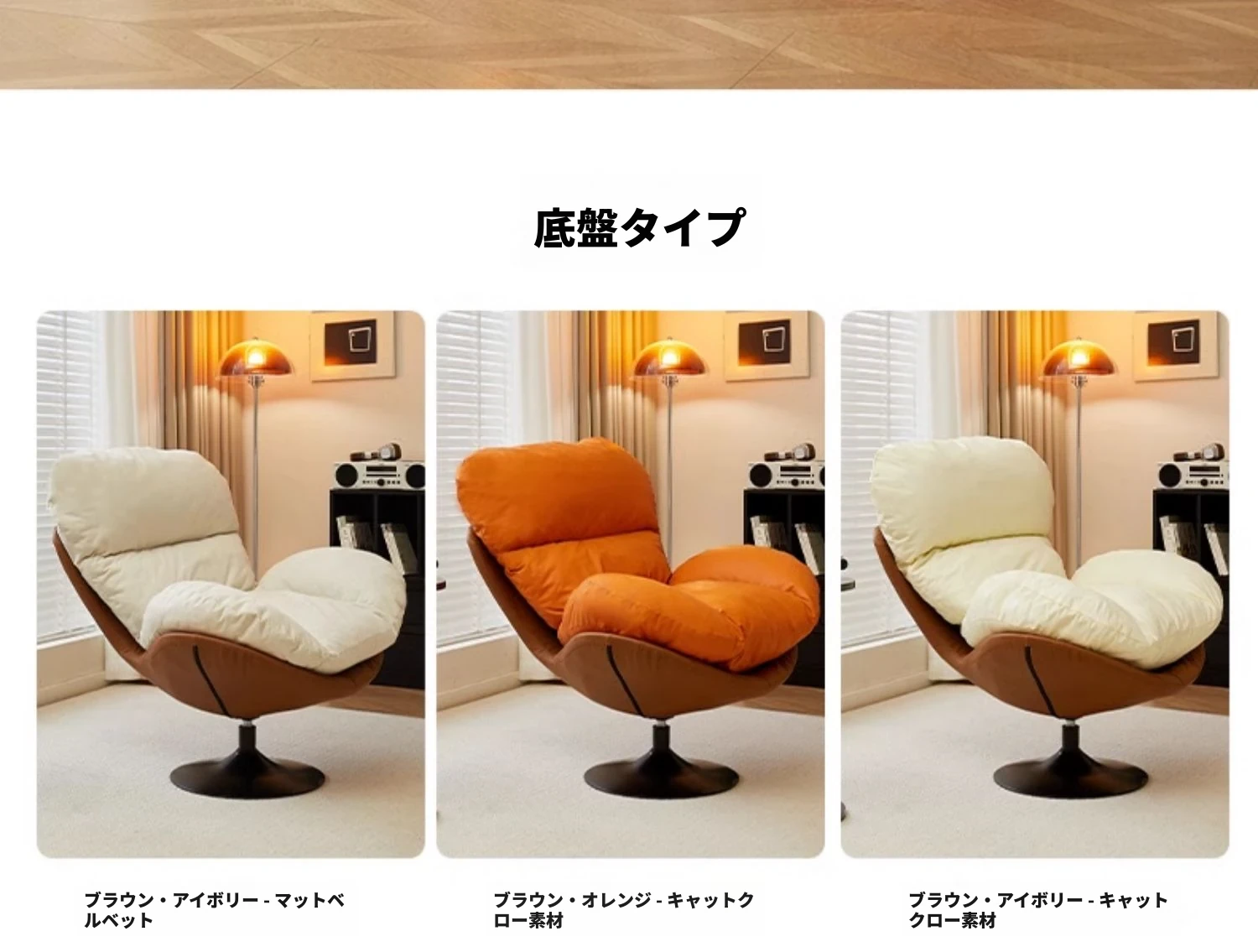【オレンジ】米白色マットフロッキー-アップグレード版ブラックスタンド(回転可能+厚手クッション+雲のような座り心地)