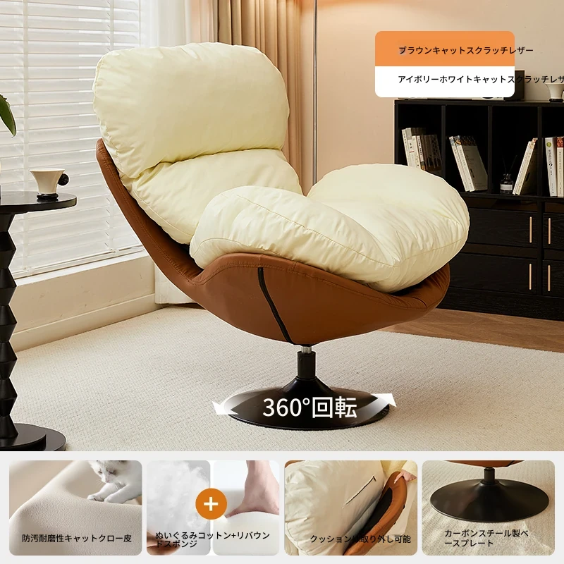 【コーヒーブラウン】米白色マットフロッキー+ブラックトレイ(回転可能+厚手クッション+雲のような座り心地)