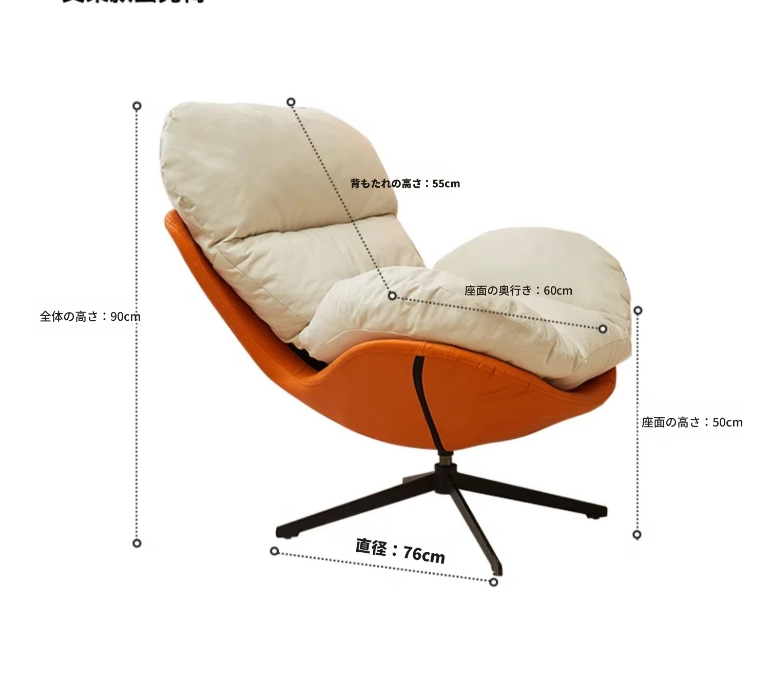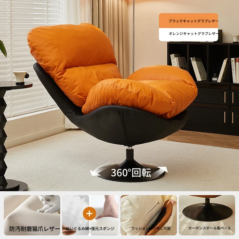【オレンジ】米白色マットフロッキー-ブラックトレイ(回転可能+厚手クッション+雲のような座り心地)