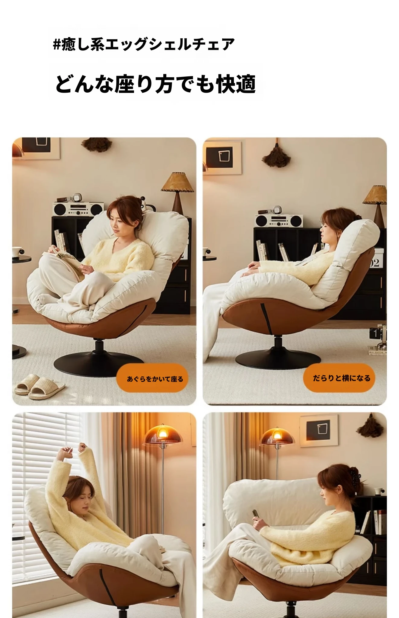 リラックスできる!おしゃれなリビング用ロッキングチェア&リクライニングソファ - バルコニーや家でくつろげる、回転する一人用エッグチェア。快適なひとときをあなたに!
