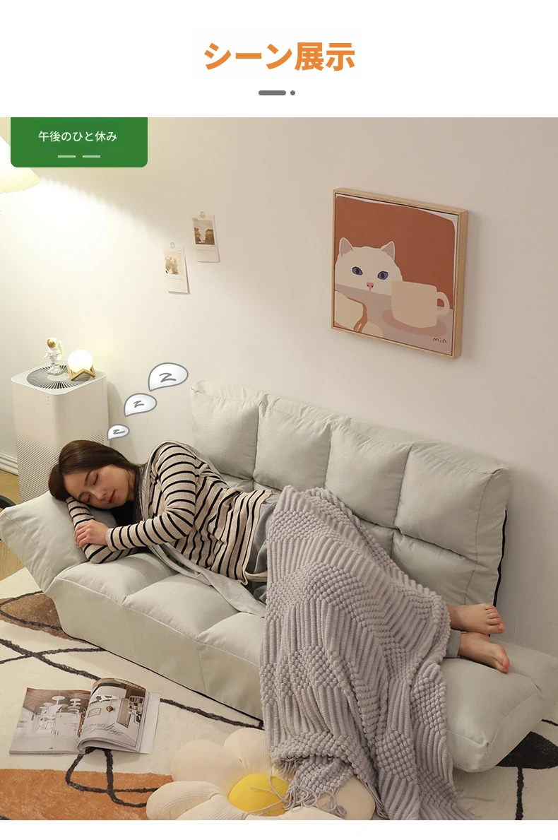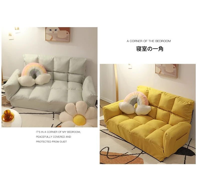 おしゃれな小型二人掛けソファ、折りたたみ式畳ベッド兼用!リビングや寝室にぴったりなインスタ映えするデザイン。快適な背もたれ付きで、狭いスペースでも大活躍!