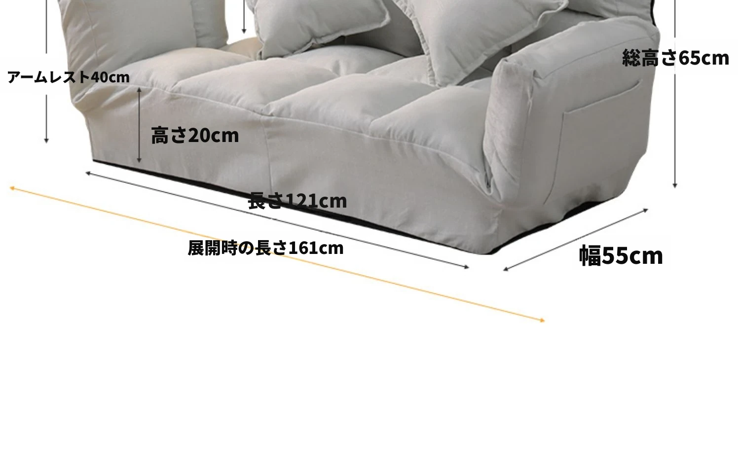【豪華厚手タイプ】【背もたれ5段調節】イエロー+2つのクッション