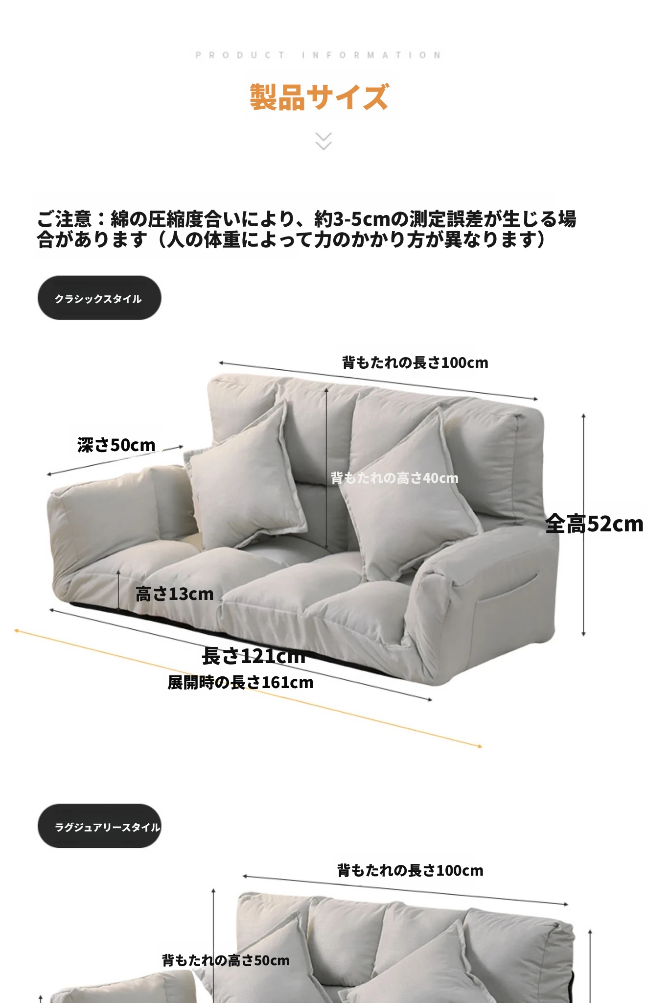 【豪華厚手タイプ】【背もたれ5段調節】アイボリー+2つのクッション