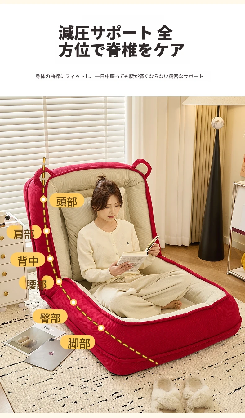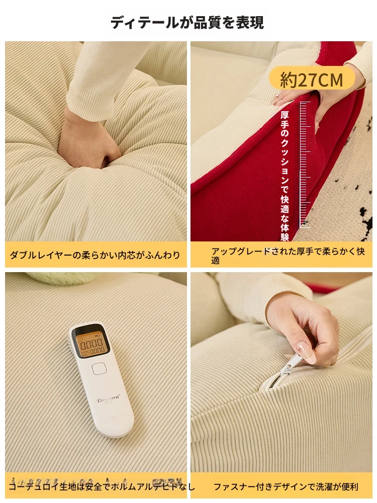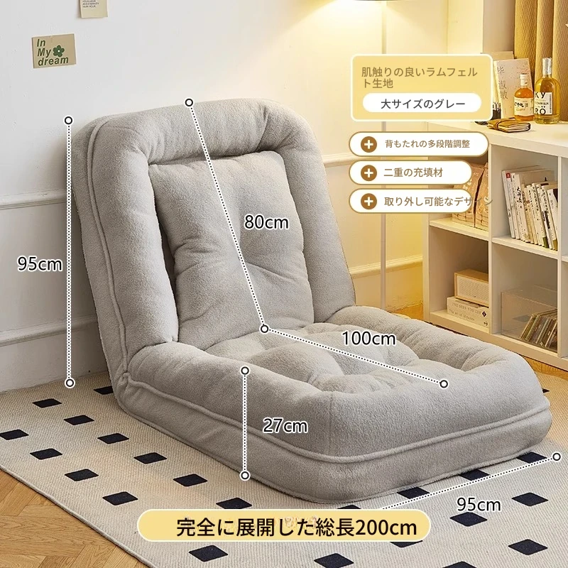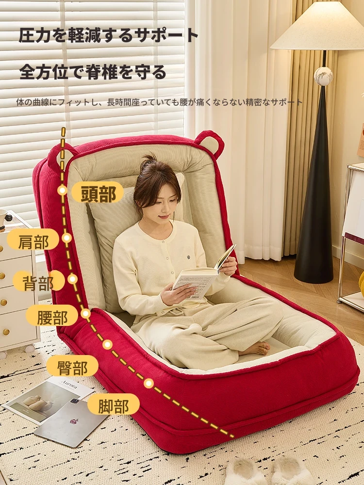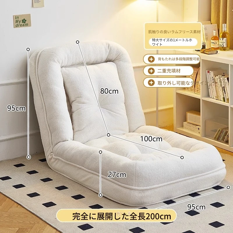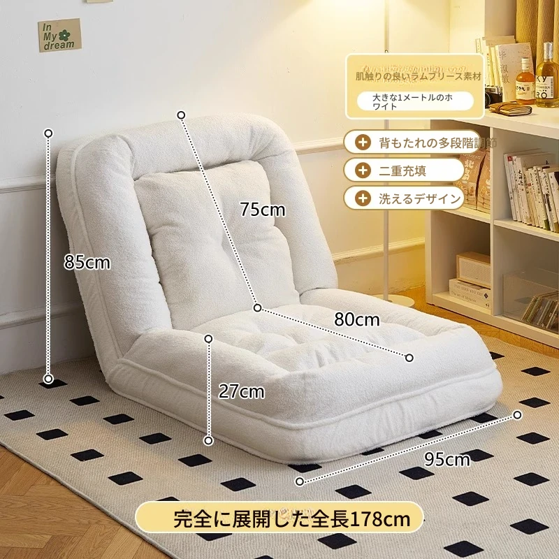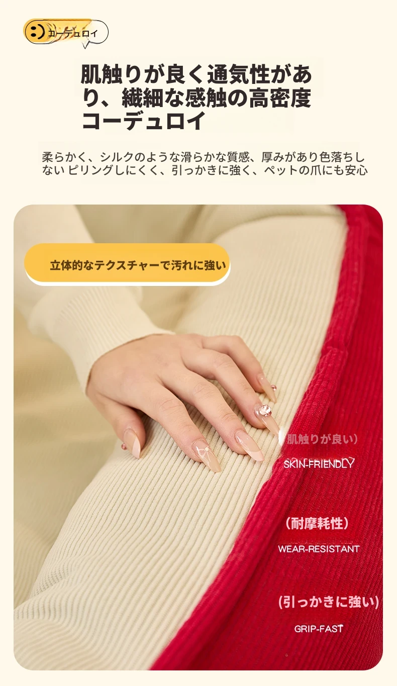 アイボリー - ベルベット生地 - 大サイズ【178CM*95CM】【背もたれ+クッション付き】