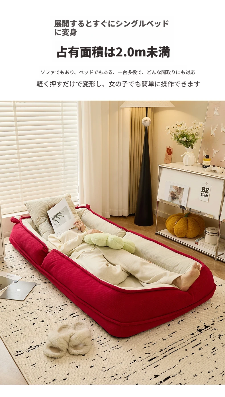 折りたたみソファベッド - 一人用・二人用、コンパクトなリビングに最適!寝ることもできる、くつろぎのソファ。人間も犬も満足できる快適空間を提供します!