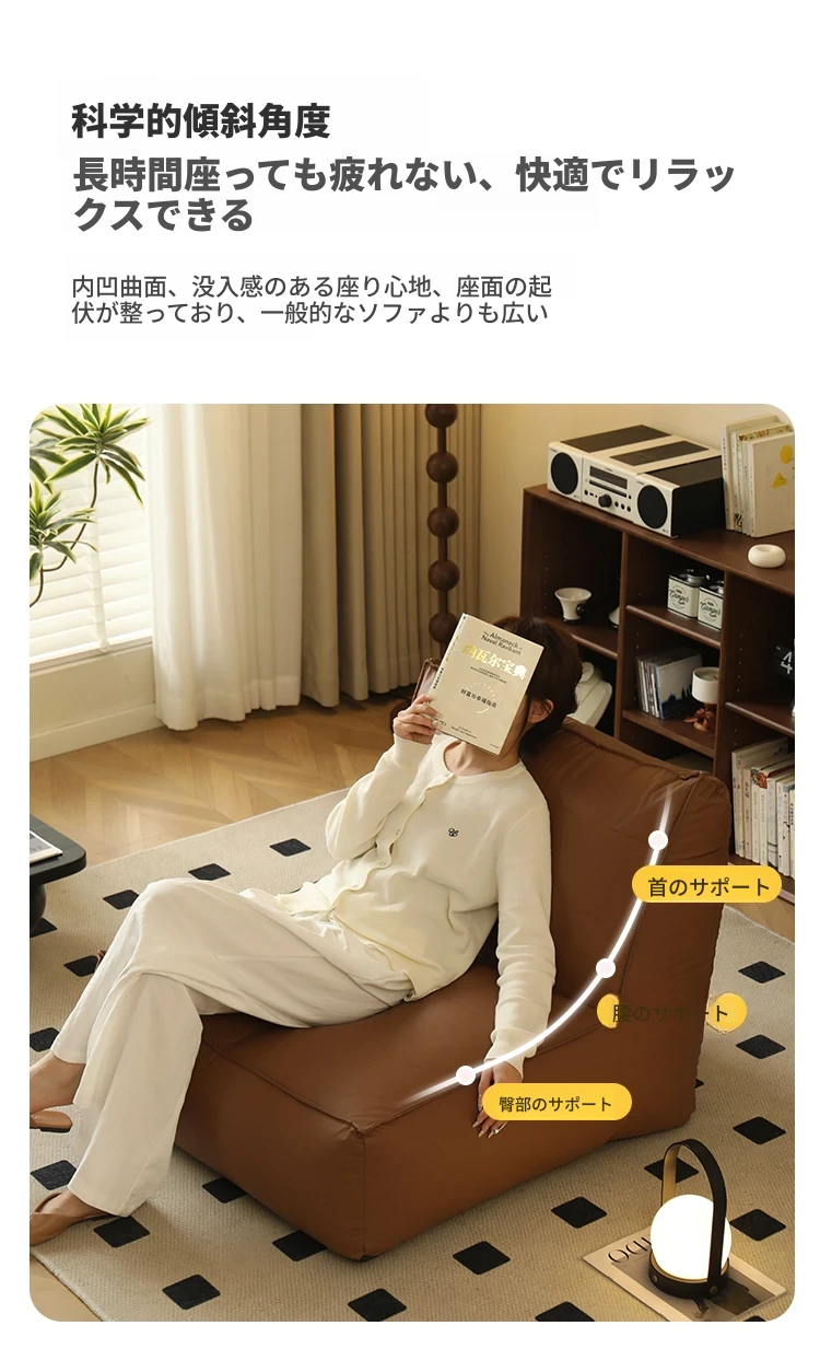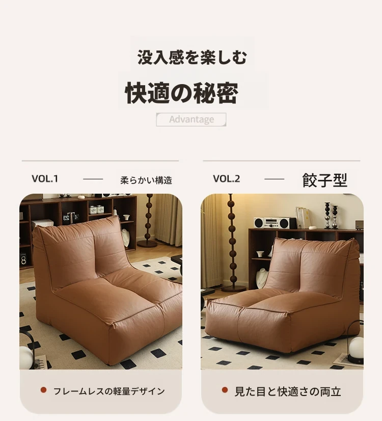 リラックス・ソファ 一人用 タタミスタイル バルコニーや寝室に最適!寝転がったり、横になったりできる、人気の毛虫型ビーズソファ。心地よさ抜群で、あなたのくつろぎ空間を演出します!