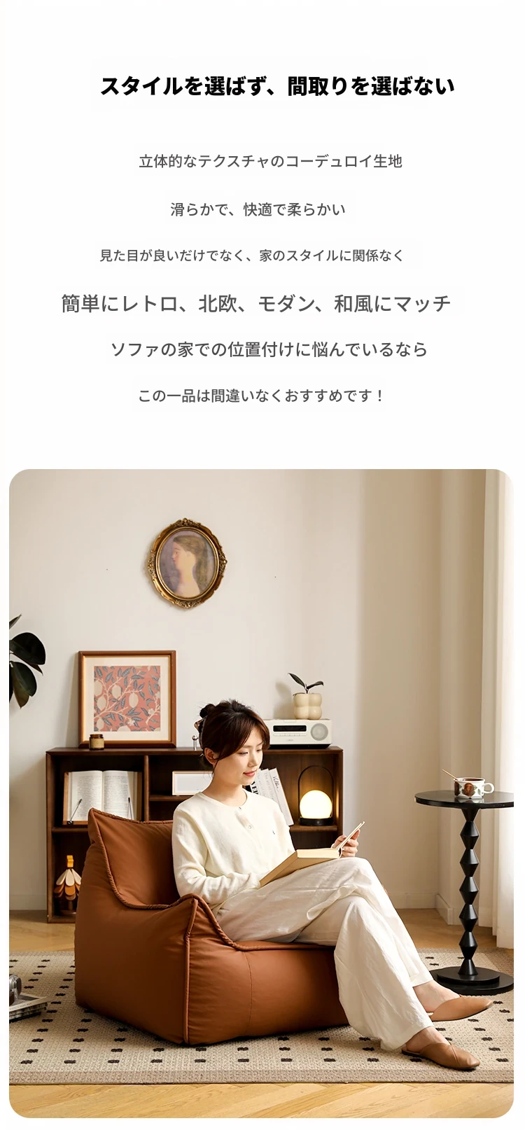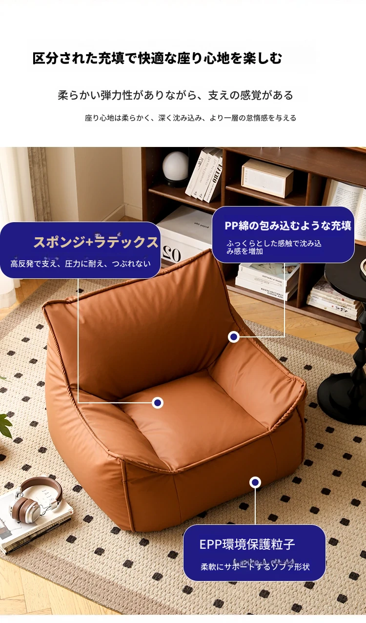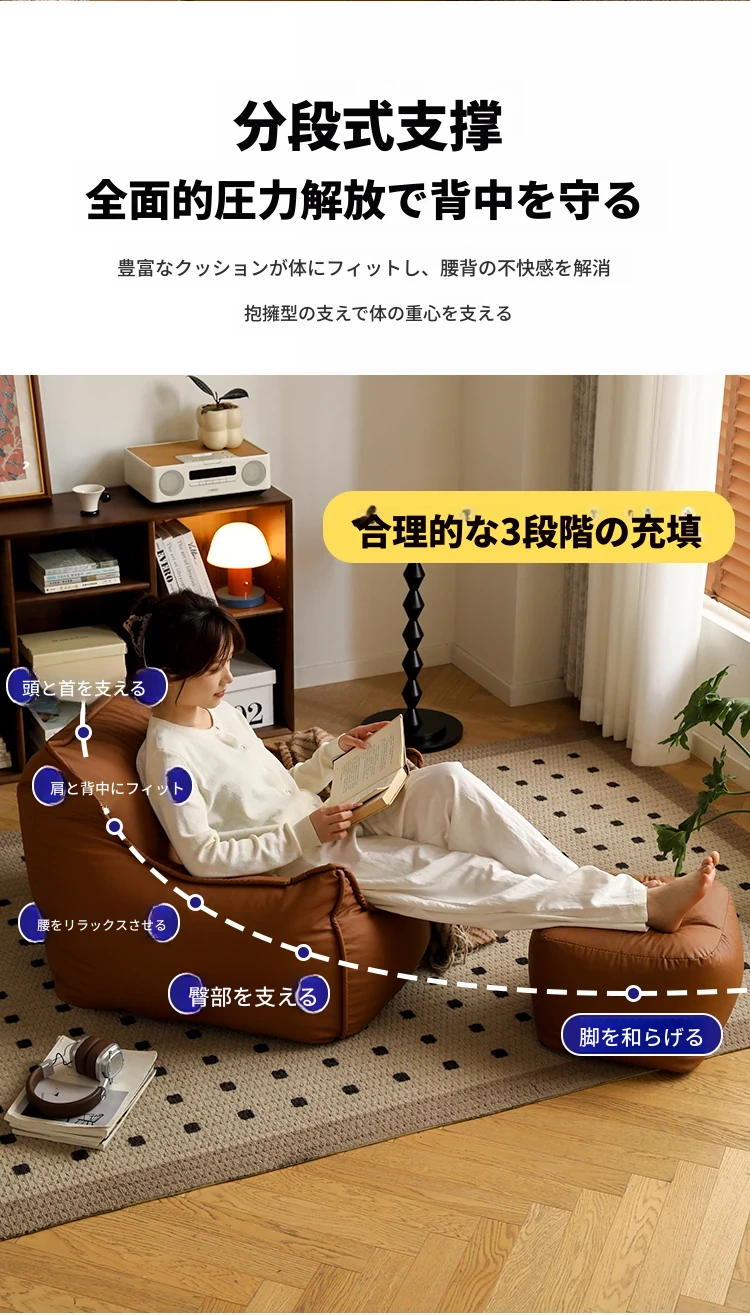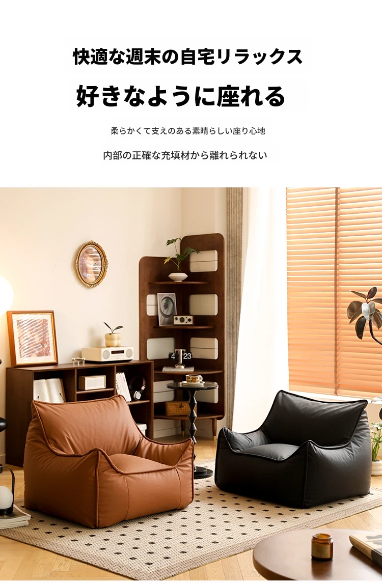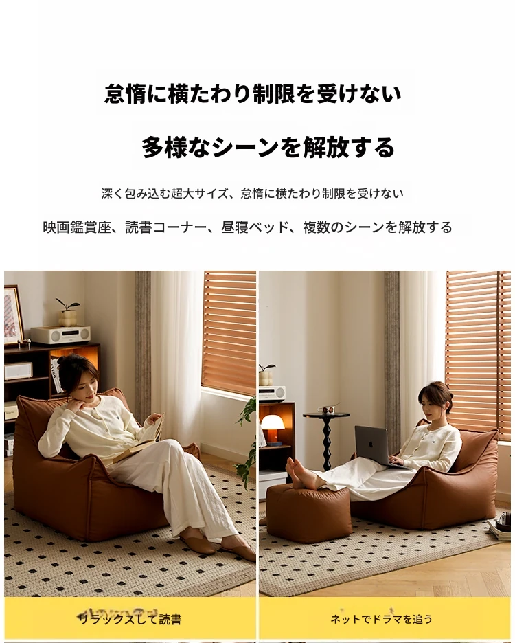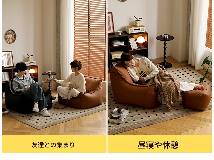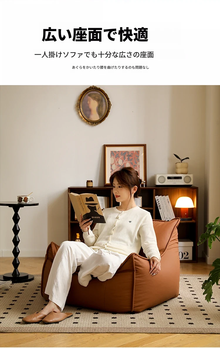 リラックスできる豆袋ソファー!寝室やバルコニーにぴったりの一人用ローチェア。畳やリビングでも大活躍の快適な座椅子。あなたのくつろぎ空間を演出します!