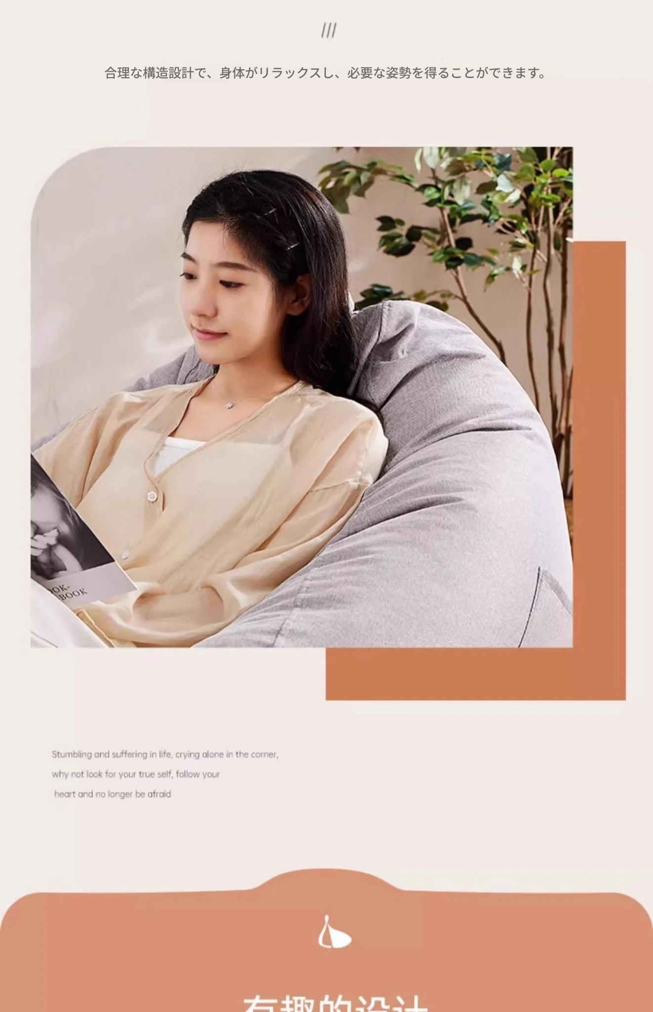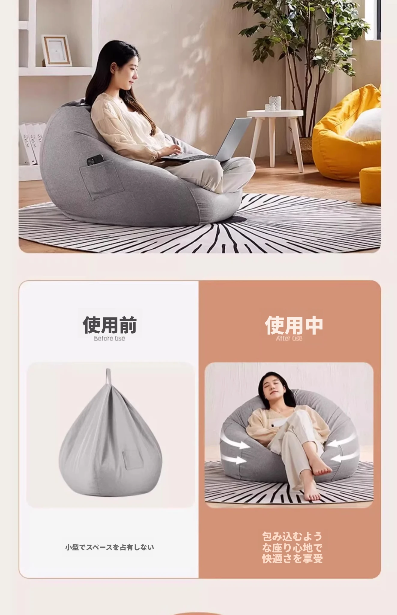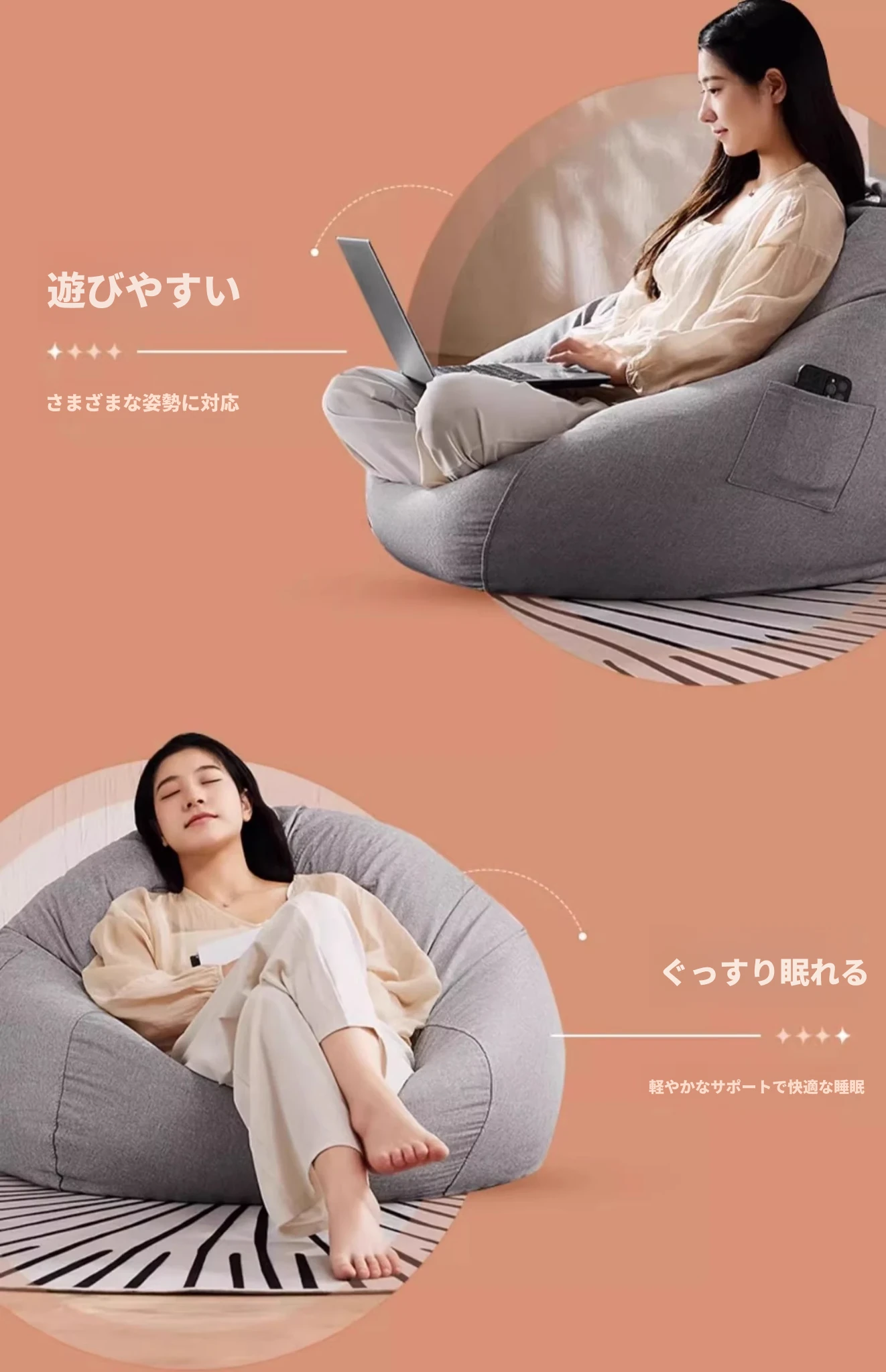 リラックスできる豆袋ソファ!寝転んでも座ってもOK!小さな部屋やバルコニーにぴったりな一人用ソファ。ペットと一緒に使える、人間のための快適な犬小屋にも最適です!