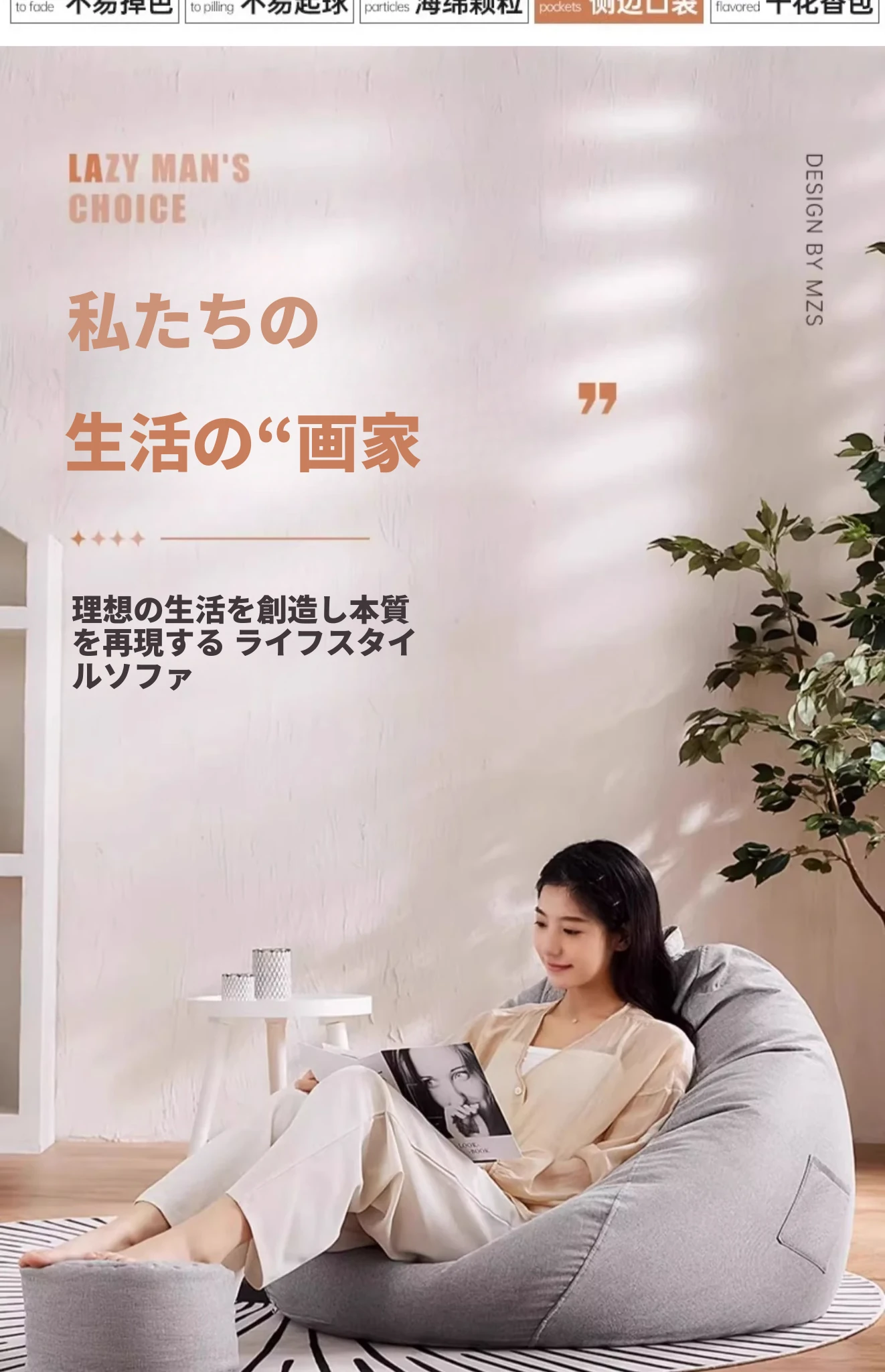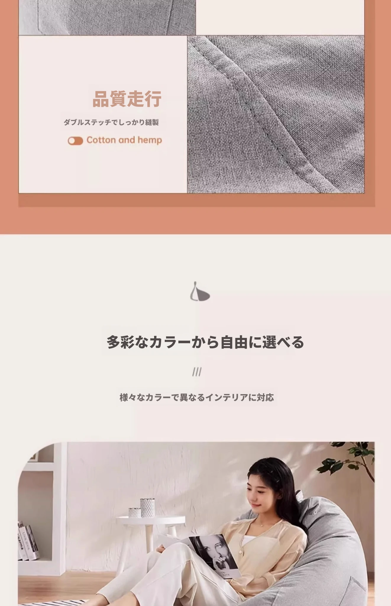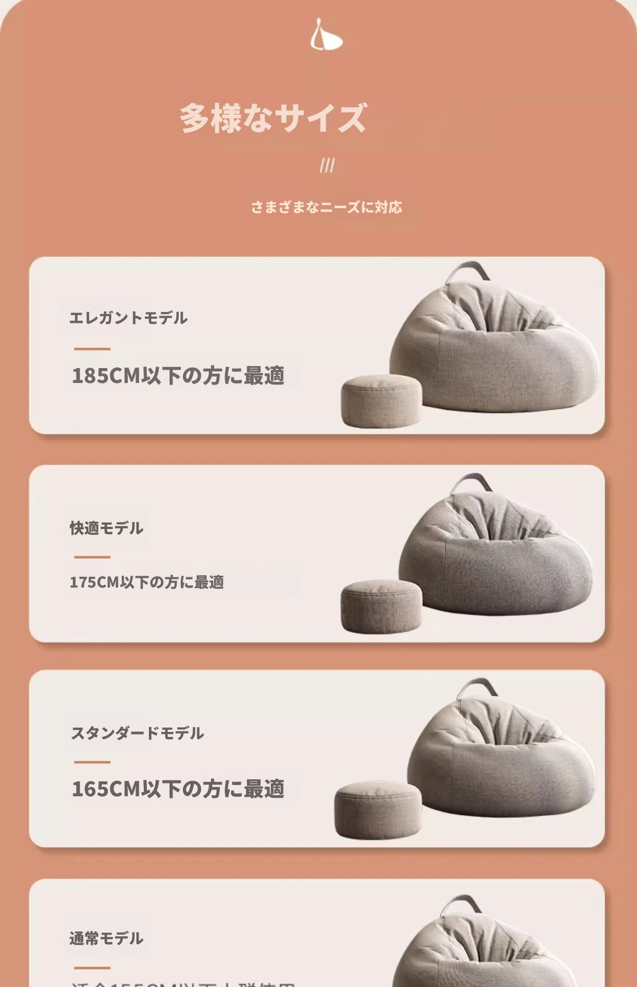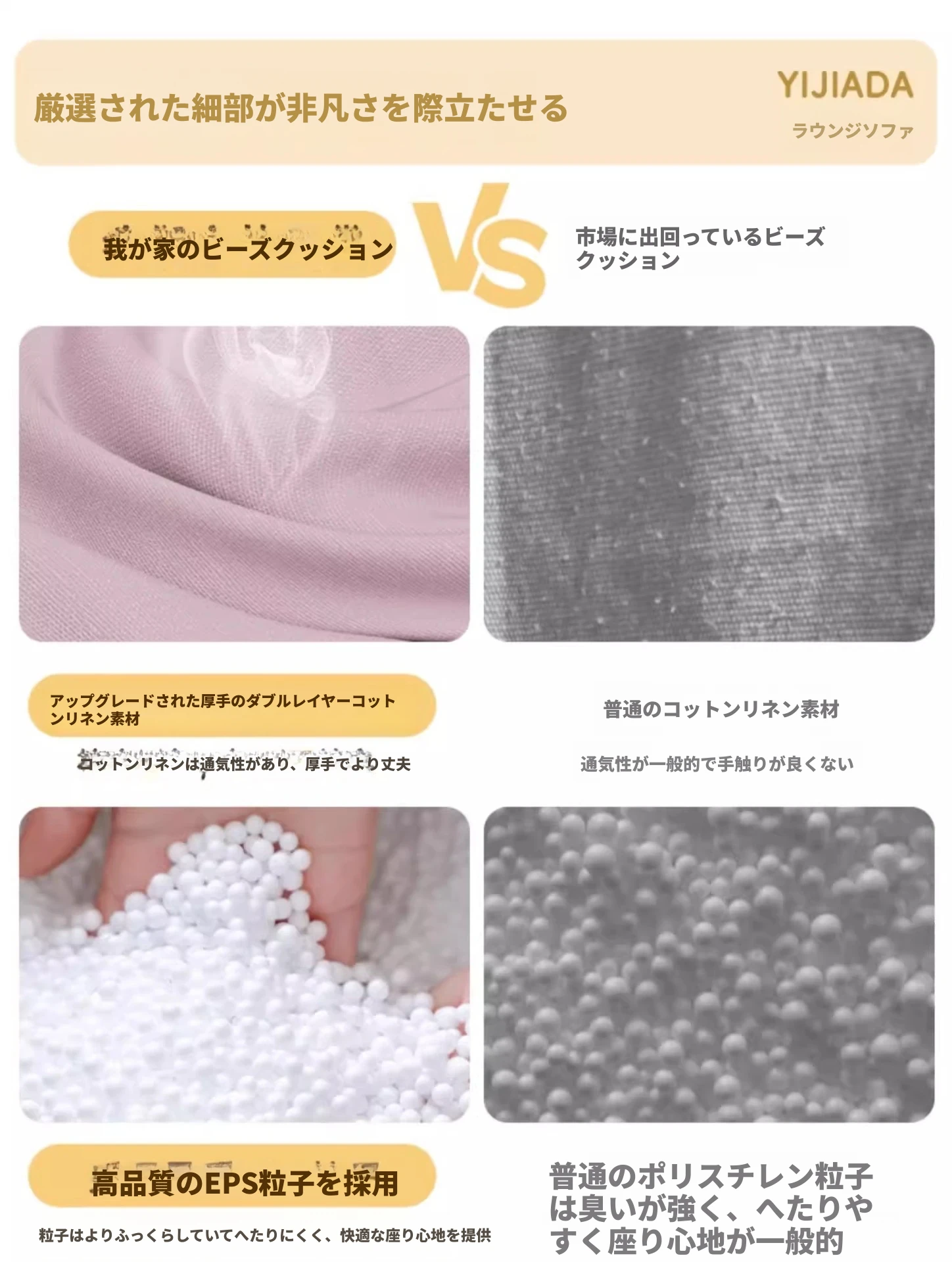 リラックスできる豆袋ソファ!寝転んでも座ってもOK!小さな部屋やバルコニーにぴったりな一人用ソファ。ペットと一緒に使える、人間のための快適な犬小屋にも最適です!
