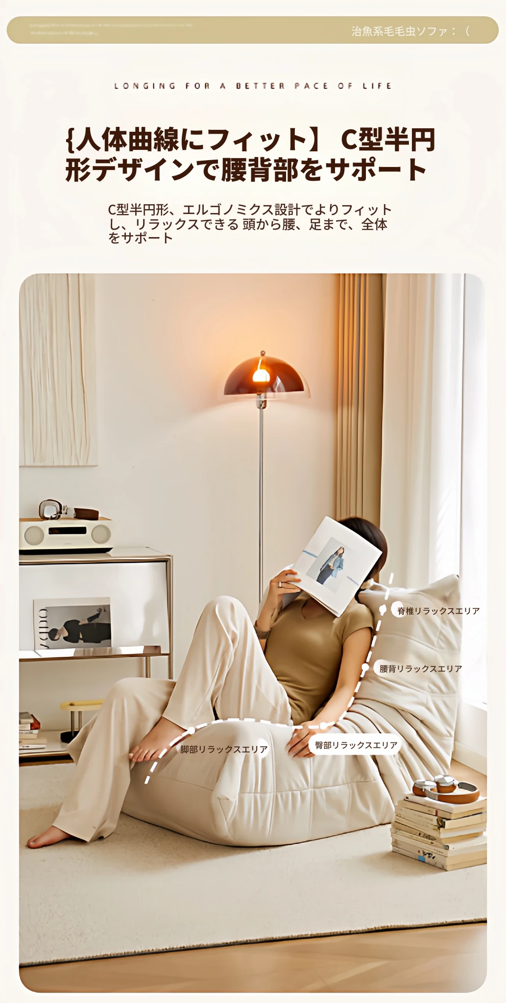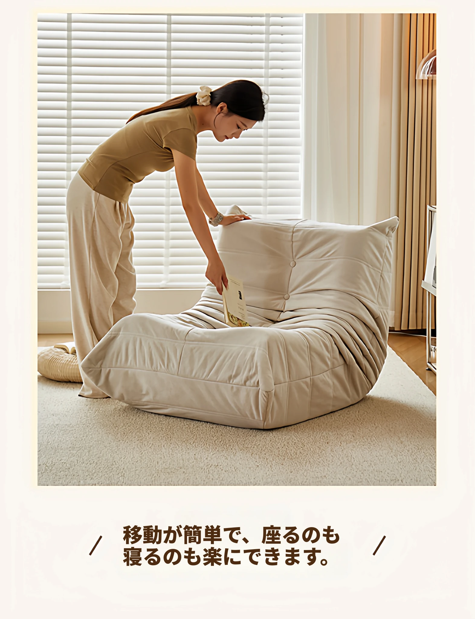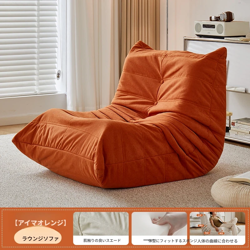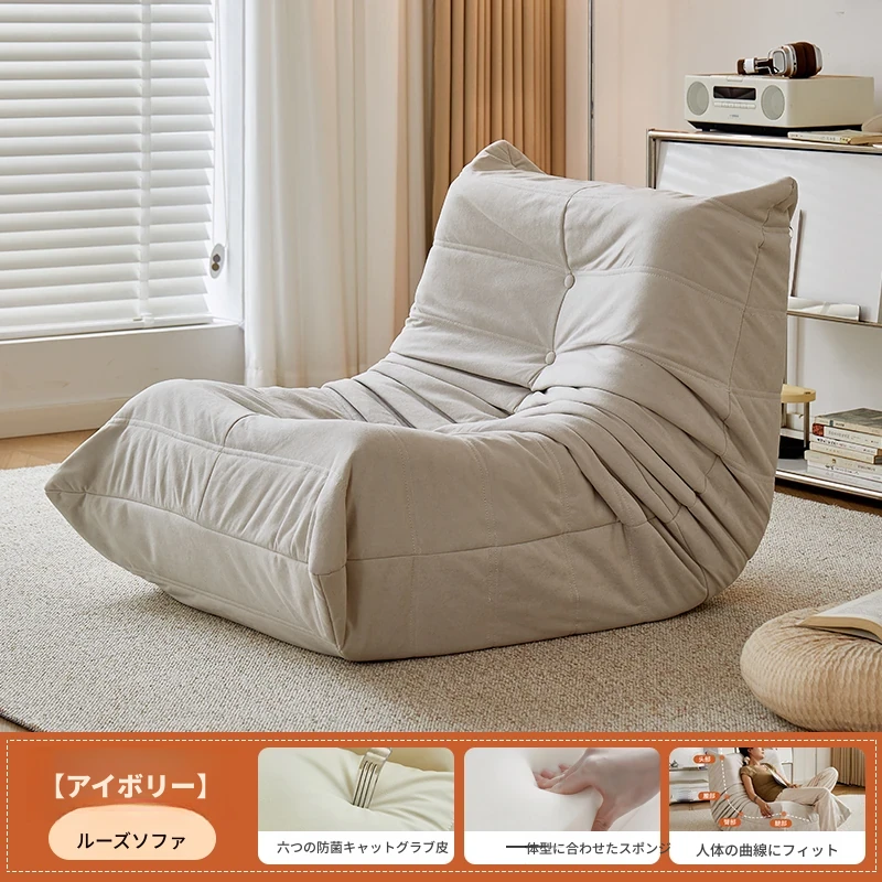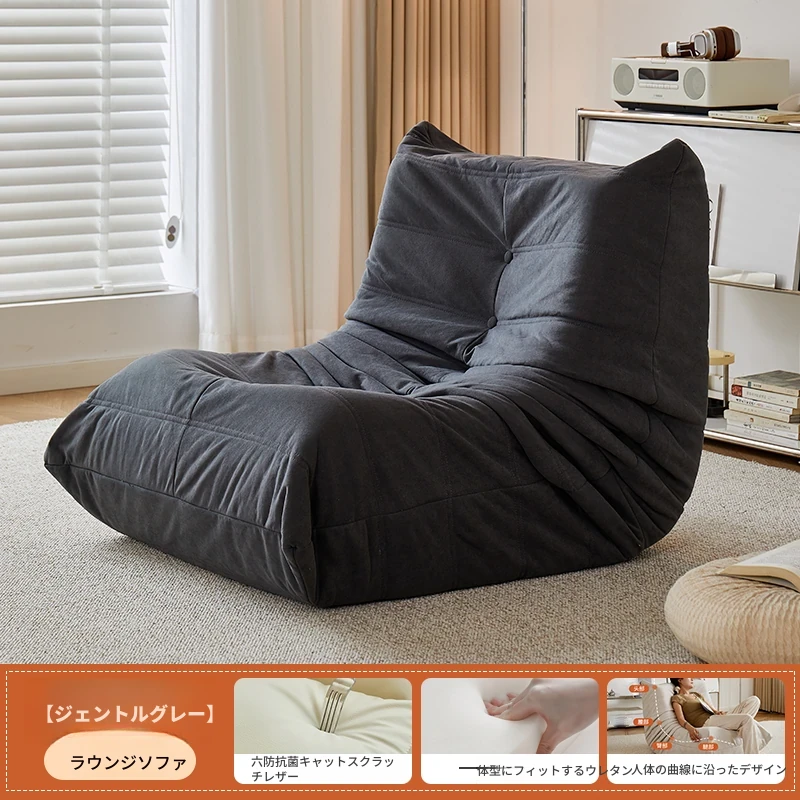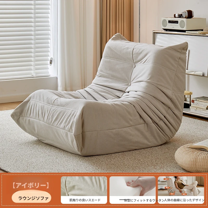 ふわふわミミズのリラックスソファ - 寝転んでリラックスできる、一人用のベッドルーム向け小型ソファ。畳スタイルの座椅子で、バルコニーやリビングでのくつろぎのひとときに最適!