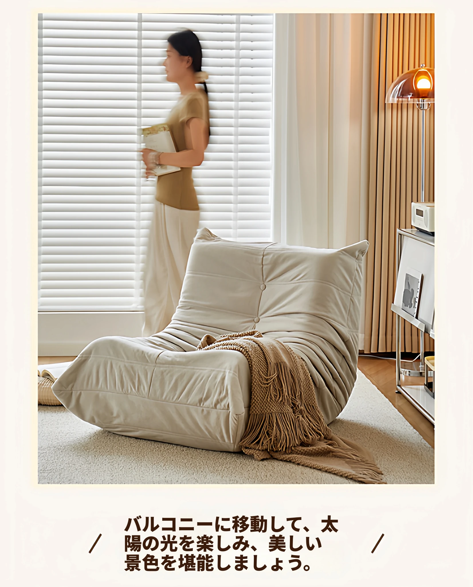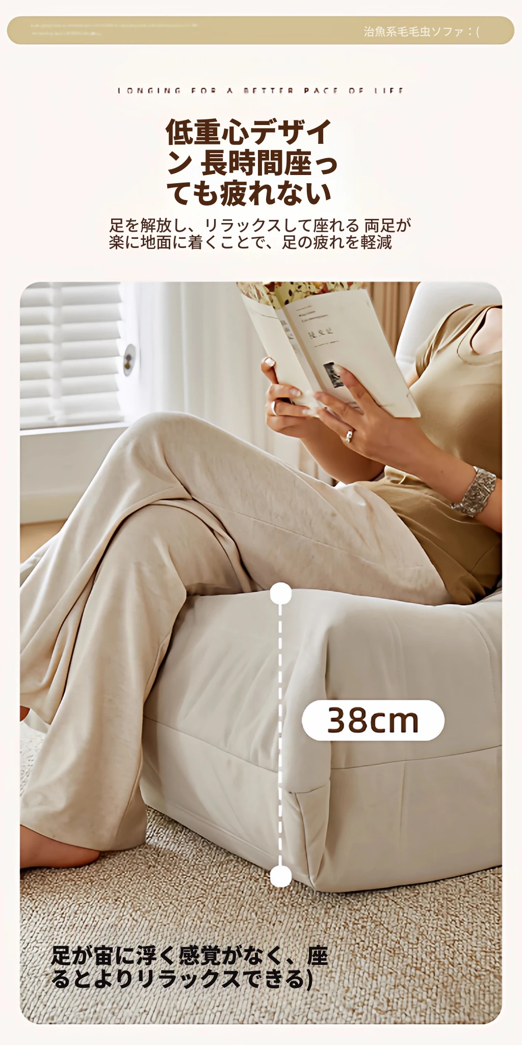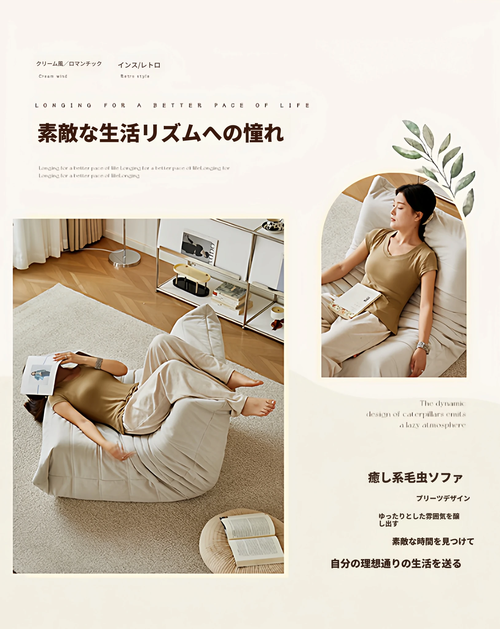 ふわふわミミズのリラックスソファ - 寝転んでリラックスできる、一人用のベッドルーム向け小型ソファ。畳スタイルの座椅子で、バルコニーやリビングでのくつろぎのひとときに最適!