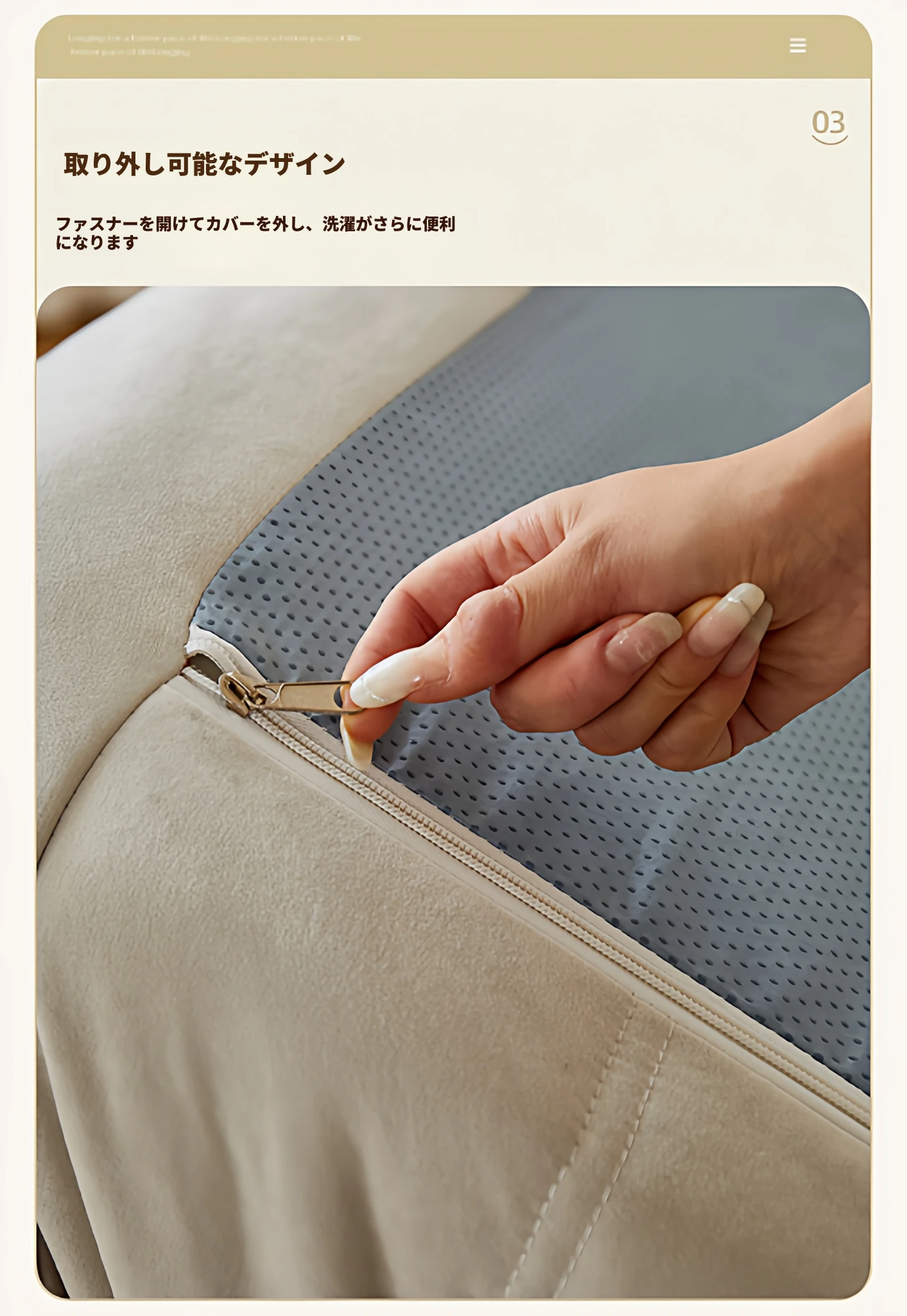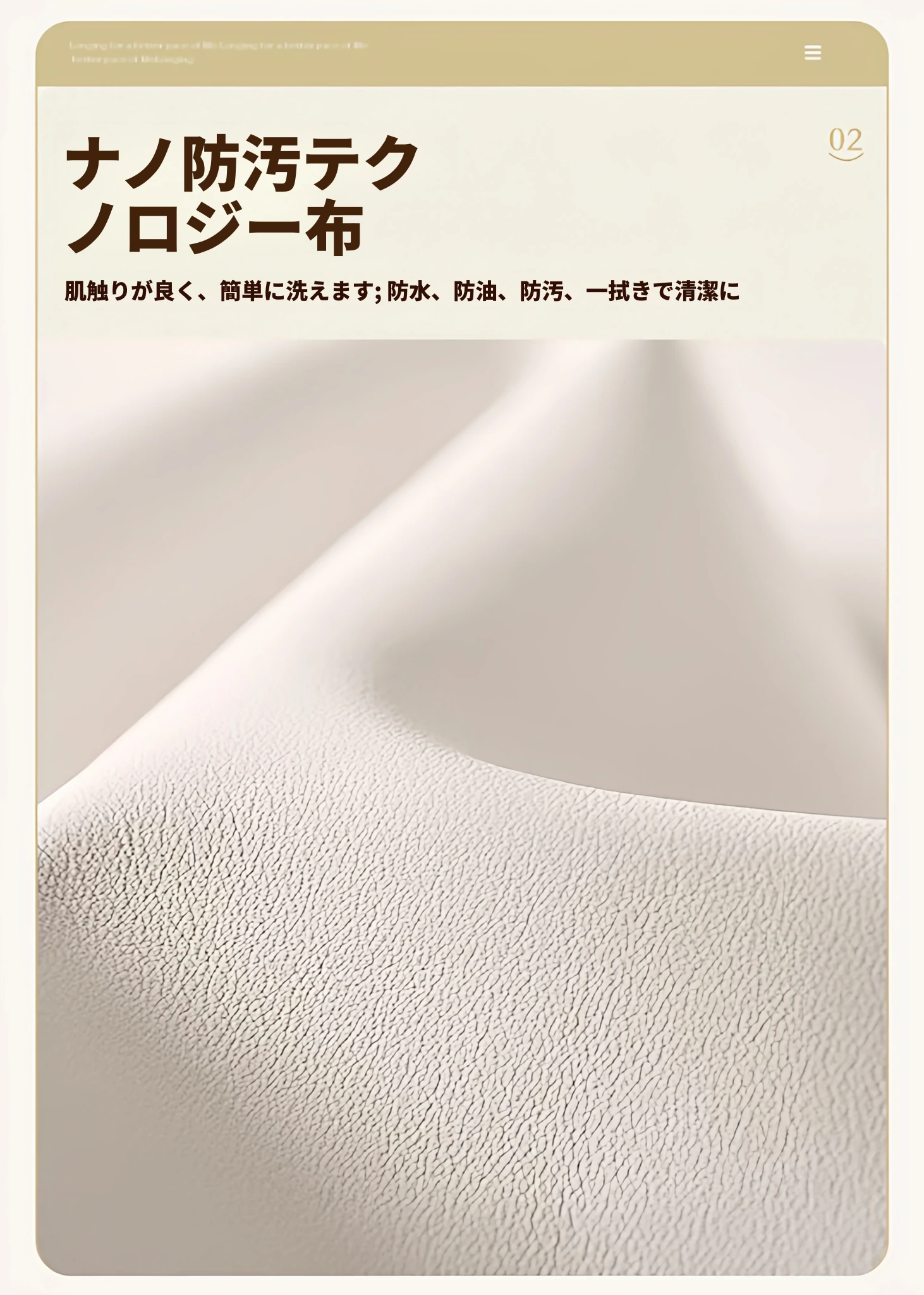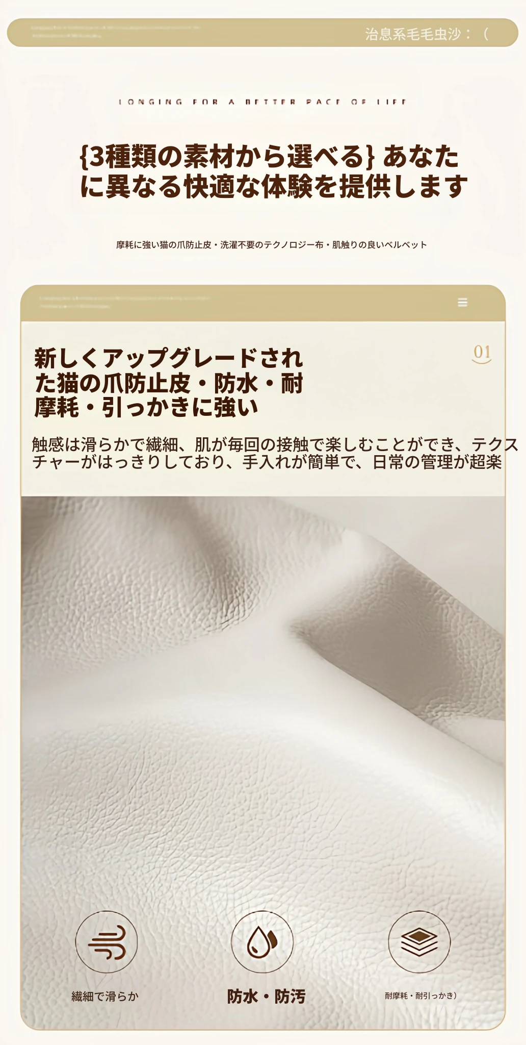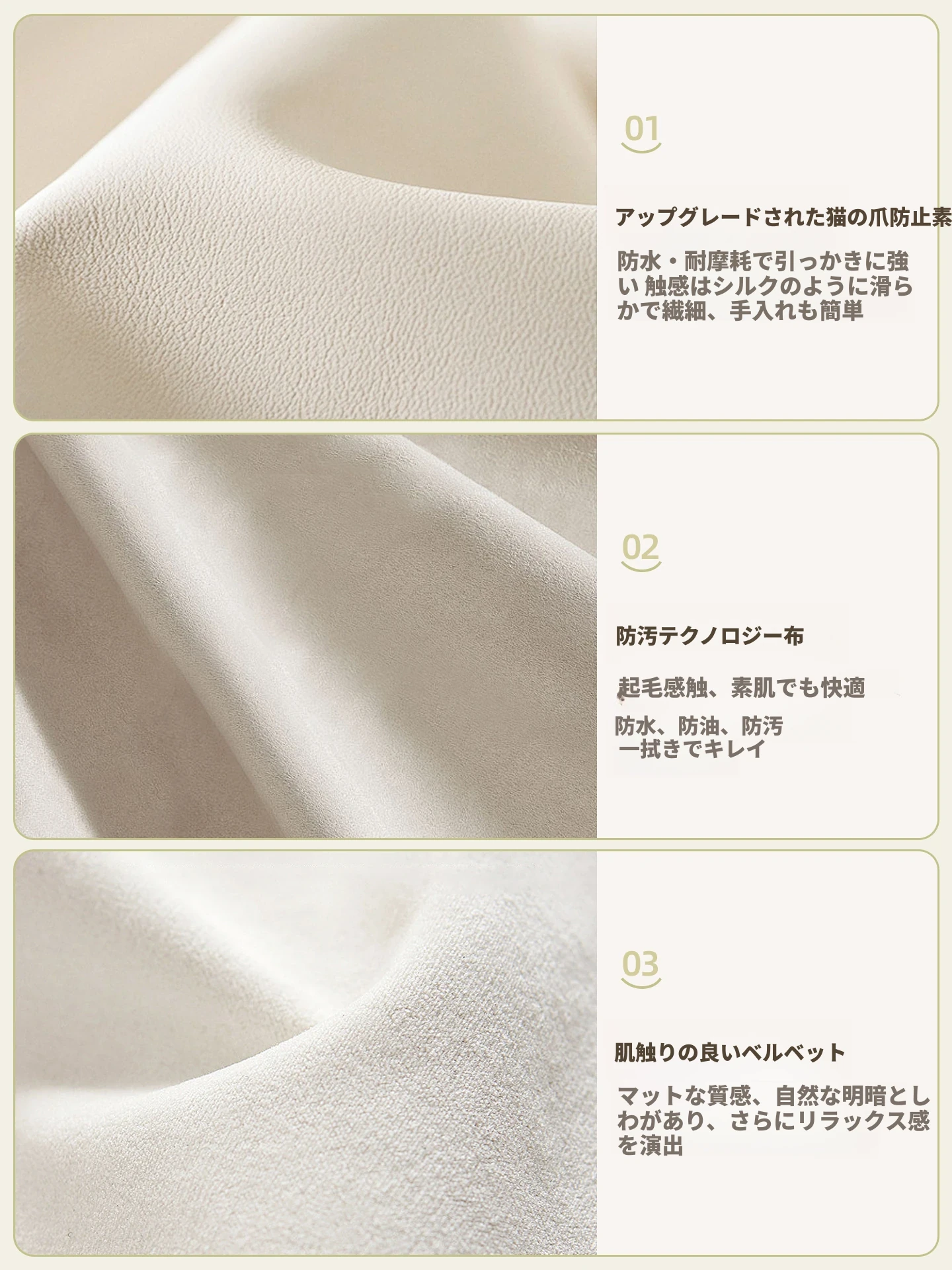尊享版✅アイボリー⭐テクノロジー布【45D一体型スポンジ 防水耐汚】