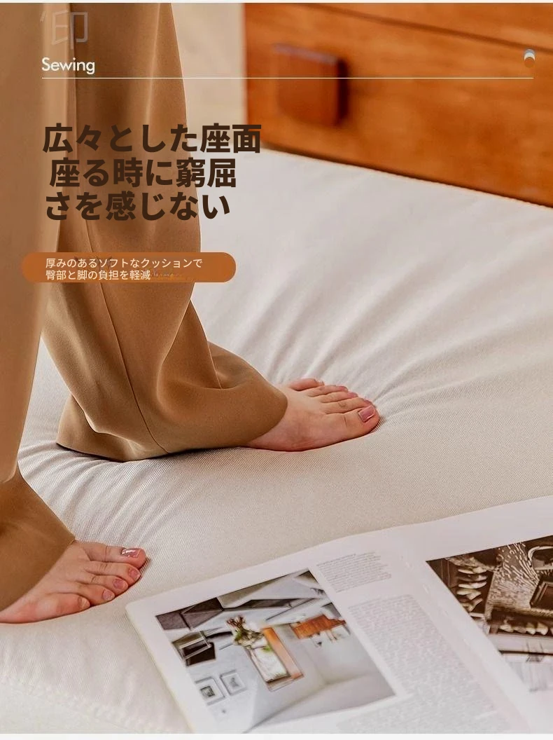 【コットンリネン/アイボリー】/【座って寝る兼用】/大サイズ90CM無垢材支え脚