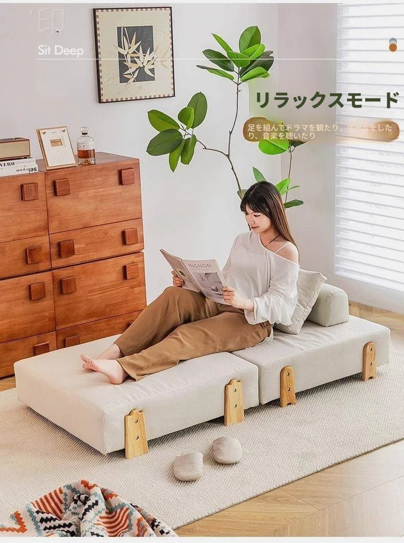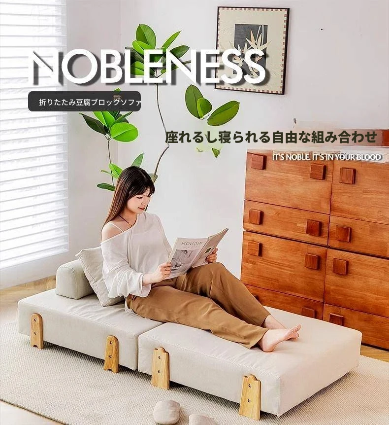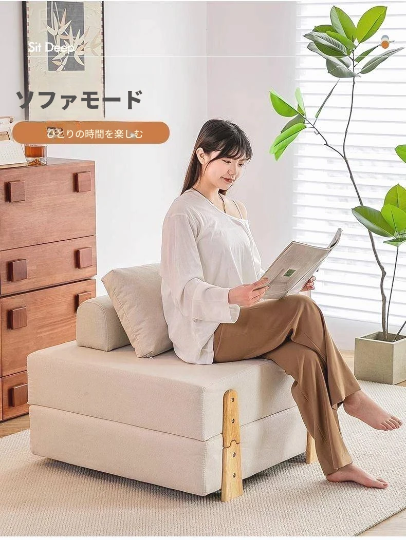リラックスできる折り畳みソファベッド!寝転んでも快適な豆腐ブロックデザインの一人用、タタミスタイルの省スペースソファ。寝室やリビングにぴったりの収納可能なアイテムで、あなたのくつろぎタイムをもっと特別に!
