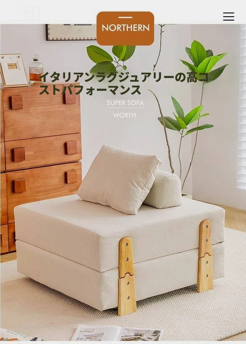【コットンリネン/アイボリー】/【座って寝る兼用】*小サイズ80CM無垢材支え脚