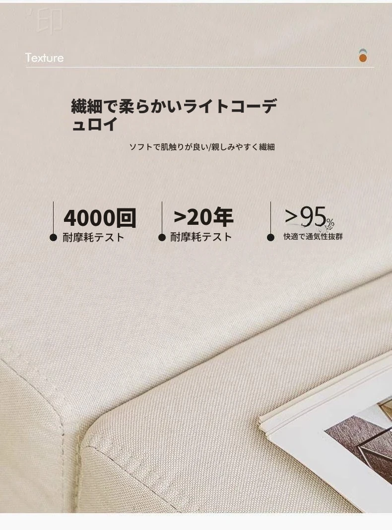 【コーデュロイ/アイボリー*】/【座って寝る兼用】/大サイズ90CM無垢材支え脚