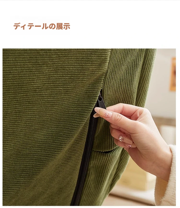 【簡易仕様】肌触りの良いコーデュロイ - ダークグリーン☆フットレストなし - アームレスト付き