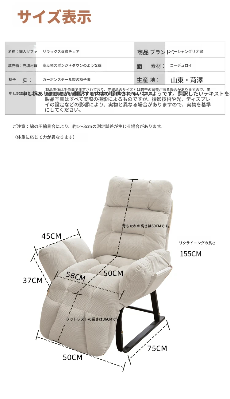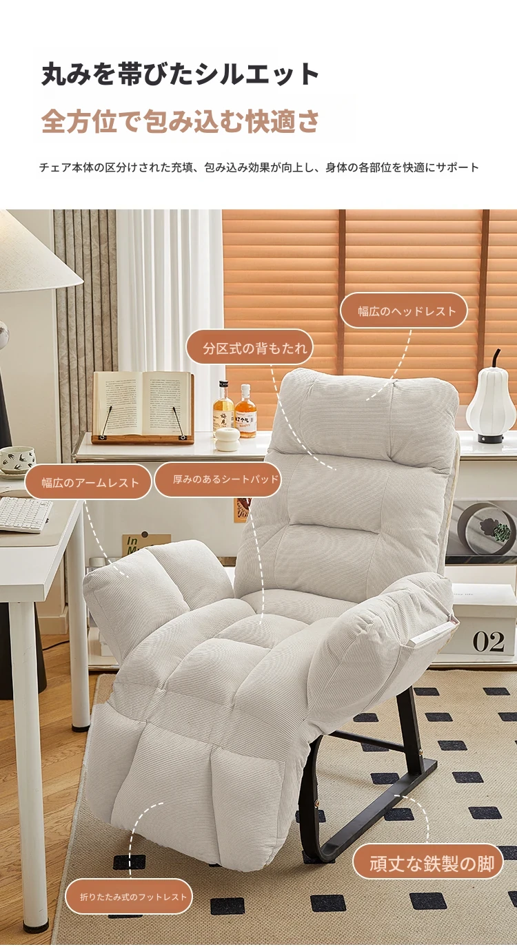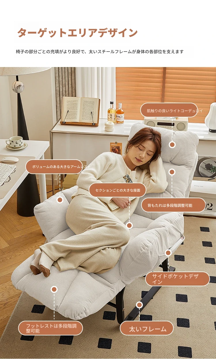 限定⭐【先輩おすすめ】肌触りの良いコーデュロイ - アイボリー⭐フットレストアームレスト調整可能 + 落下防止支え(毎日8件限定購入)