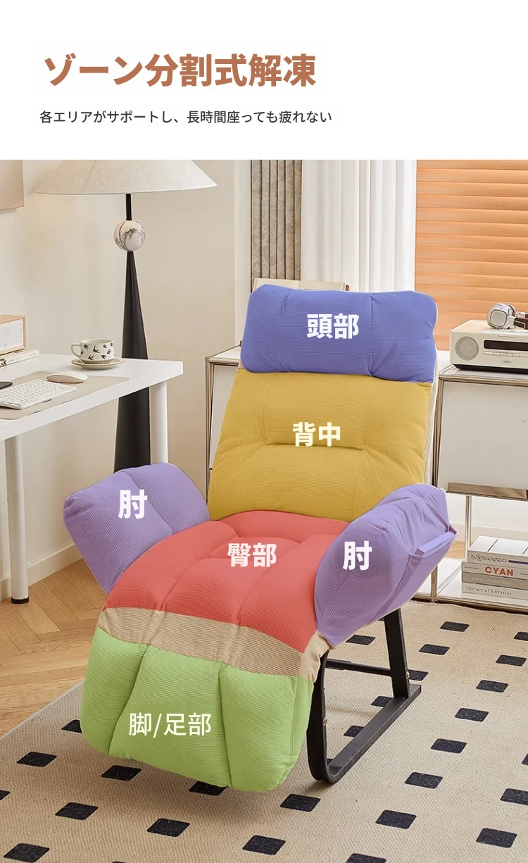 リラックスできる!快適な一人用ソファ - 家庭や寝室にぴったりのフロアチェア、学生寮やデスク用にも最適!柔らかくて心地よい背もたれで、くつろぎの時間を提供します。