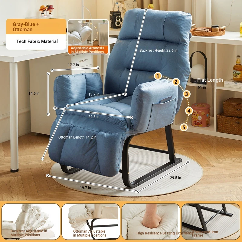 No-Wash Technical Cloth-Blue☆Footrest + Armrest [Multi-Level Adjustable]