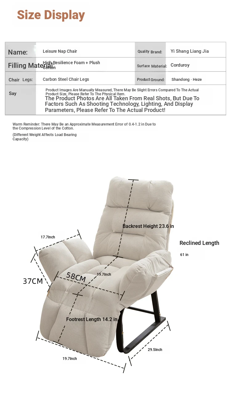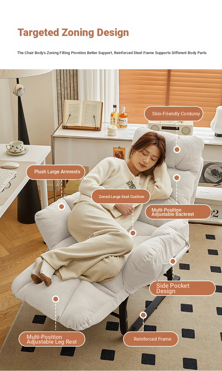Limited Edition⭐[Senior Sister Recoinendation] Skin-Friendly Corduroy-Off-White⭐Adjustable Footrest and Armrest + Anti-Fall Support (Limited to 8 Orders Per Day)
