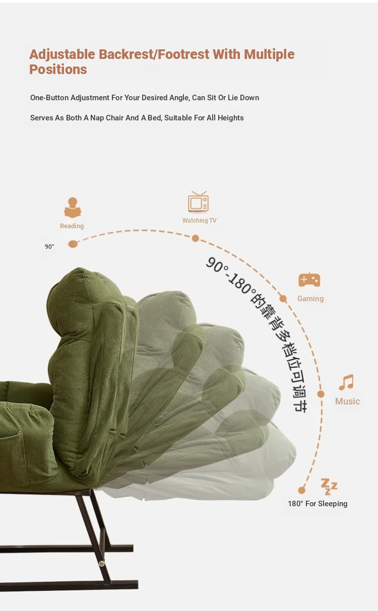 Skin-Friendly Corduroy-Dark Green☆Footrest + Armrest [Multi-Level Adjustable]