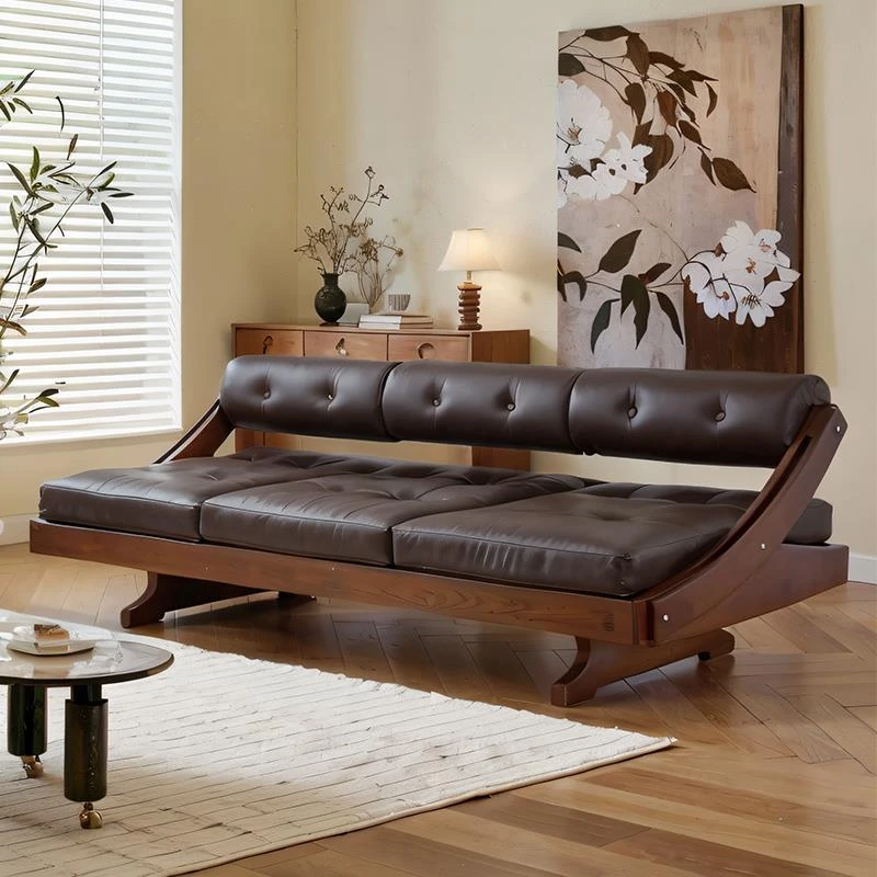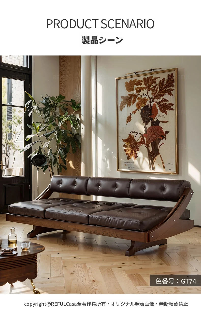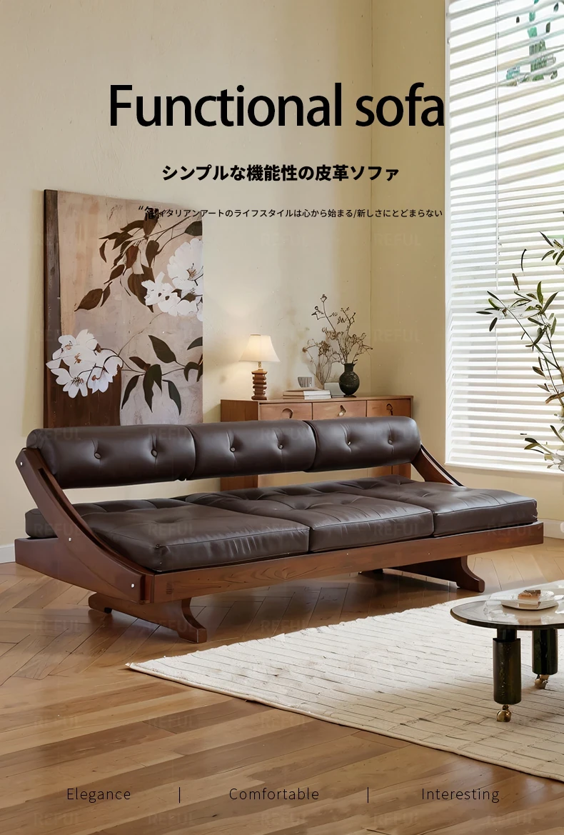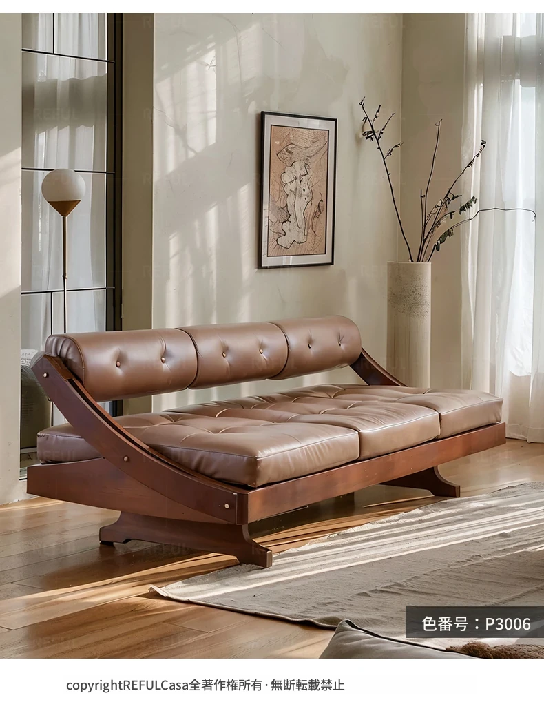 デザイナーズイタリアンレトロ本革ソファ・ストレート3人掛け・アンティークウッド・ホワイトアッシュ・佛山龙江スタイルの洗練されたエレガンスをお楽しみください!