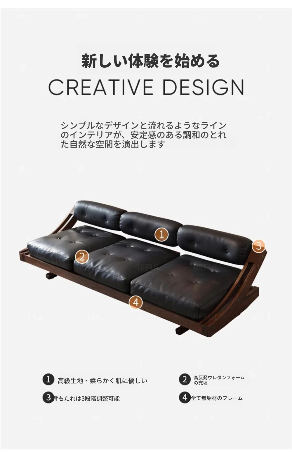 機能的な真皮ソファ 小型スペース向け 電動調整可能なフレンチヴィンテージスタイル 高級牛革 ブラックレザーソファで、快適さとスタイルを両立!