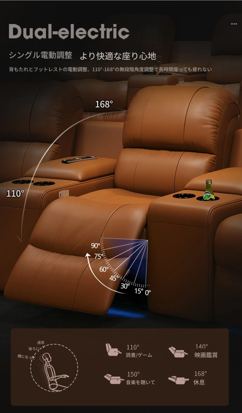 壁に寄せない機能性本革ソファ!イタリアンミニマルデザインの3人掛け電動リクライニングソファ。広い部屋にも小さな部屋にもぴったりの快適さを提供します。あなたのリビングを洗練された空間に変えましょう!