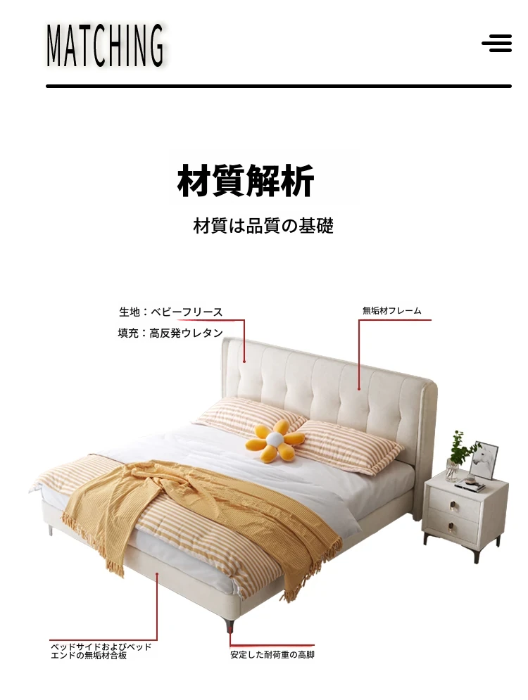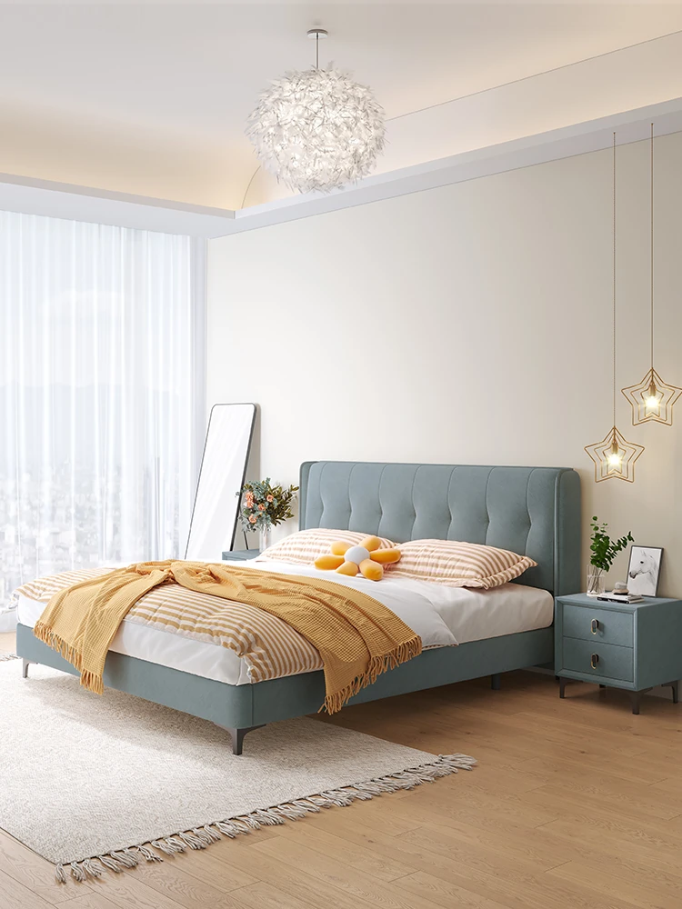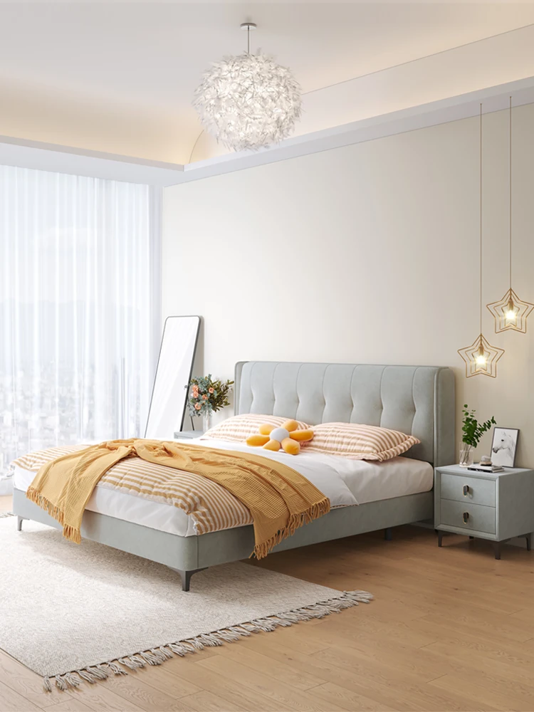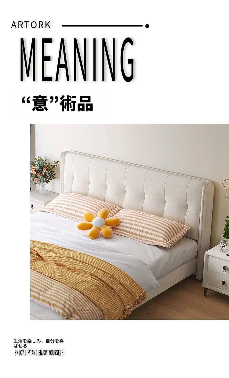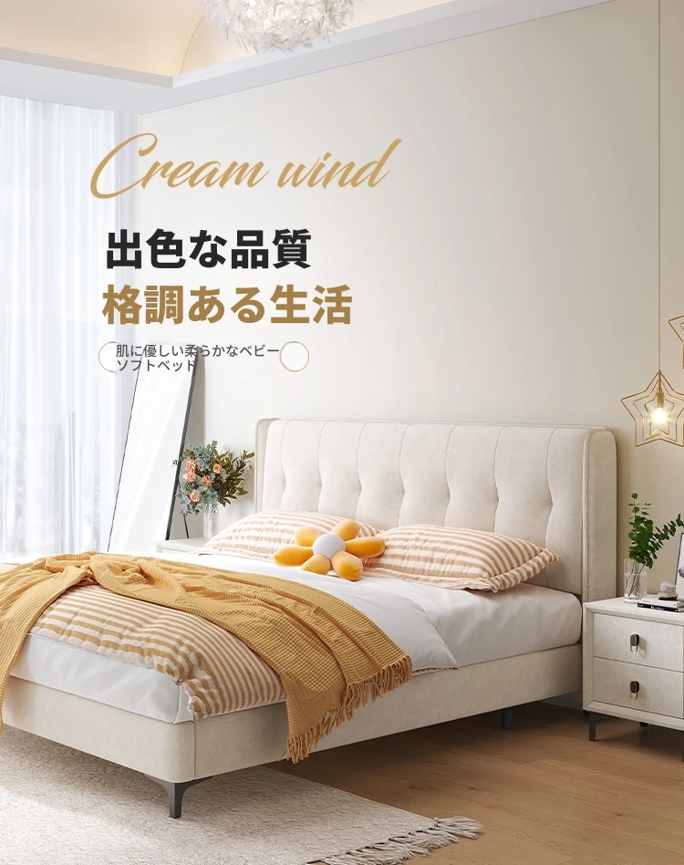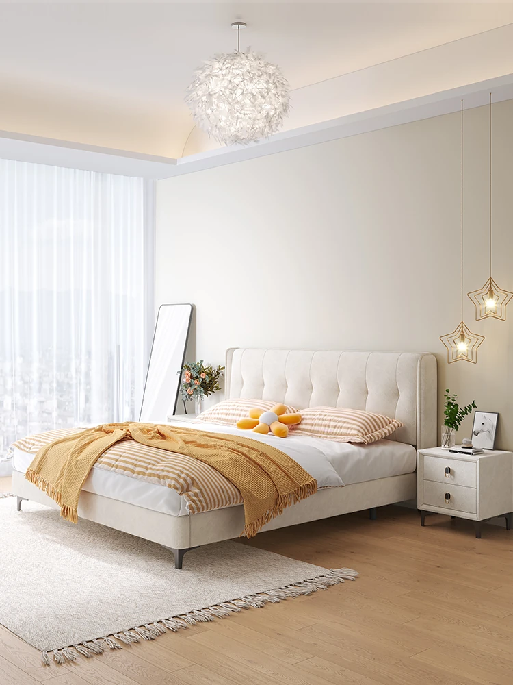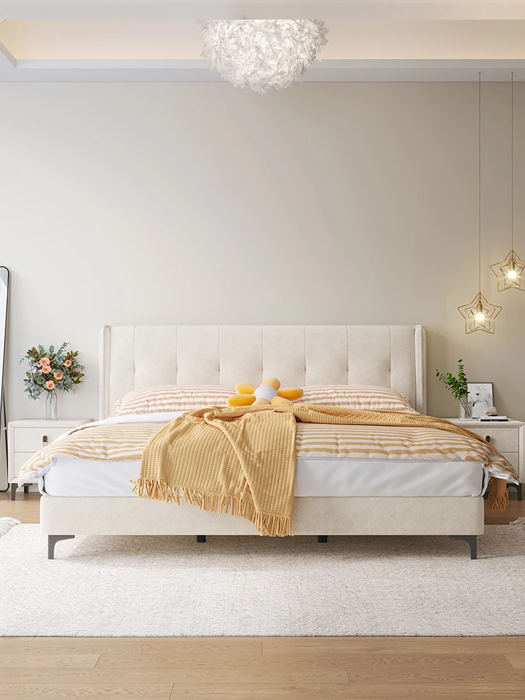ラグジュアリーなクリームカラーの主寝室用1.8m大床!ソフトパッケージデザインで、赤ちゃんのような柔らかさを実現した新作の人気軽奢ダブルベッド。特別な夜を演出する、理想の婚礼ベッド!