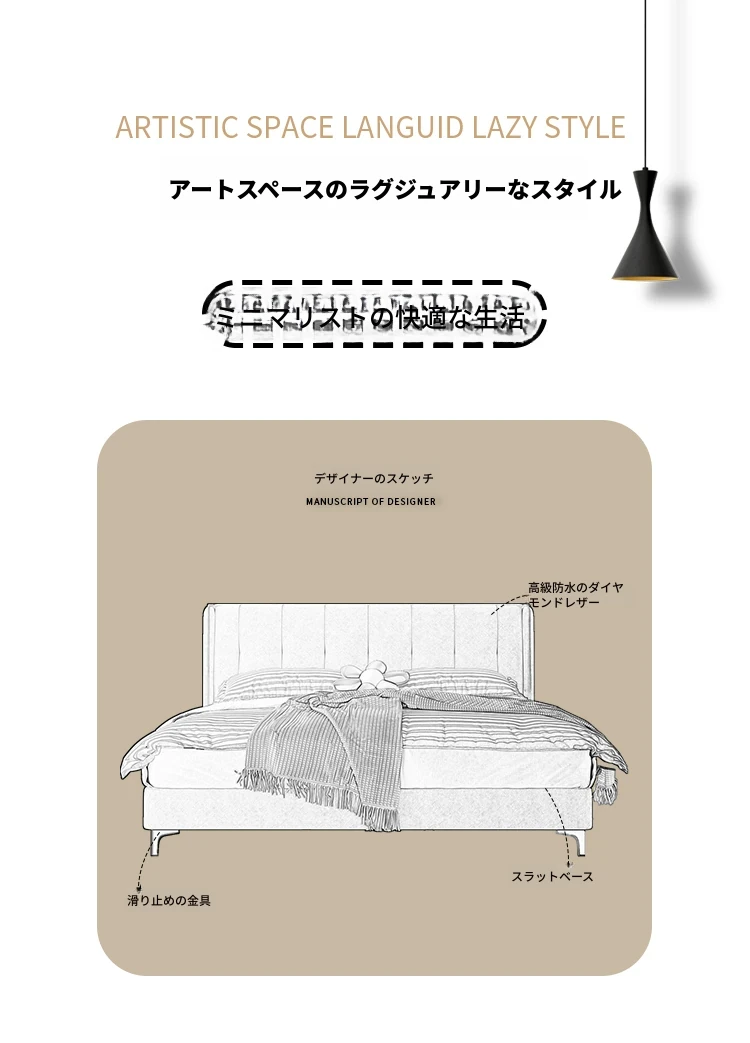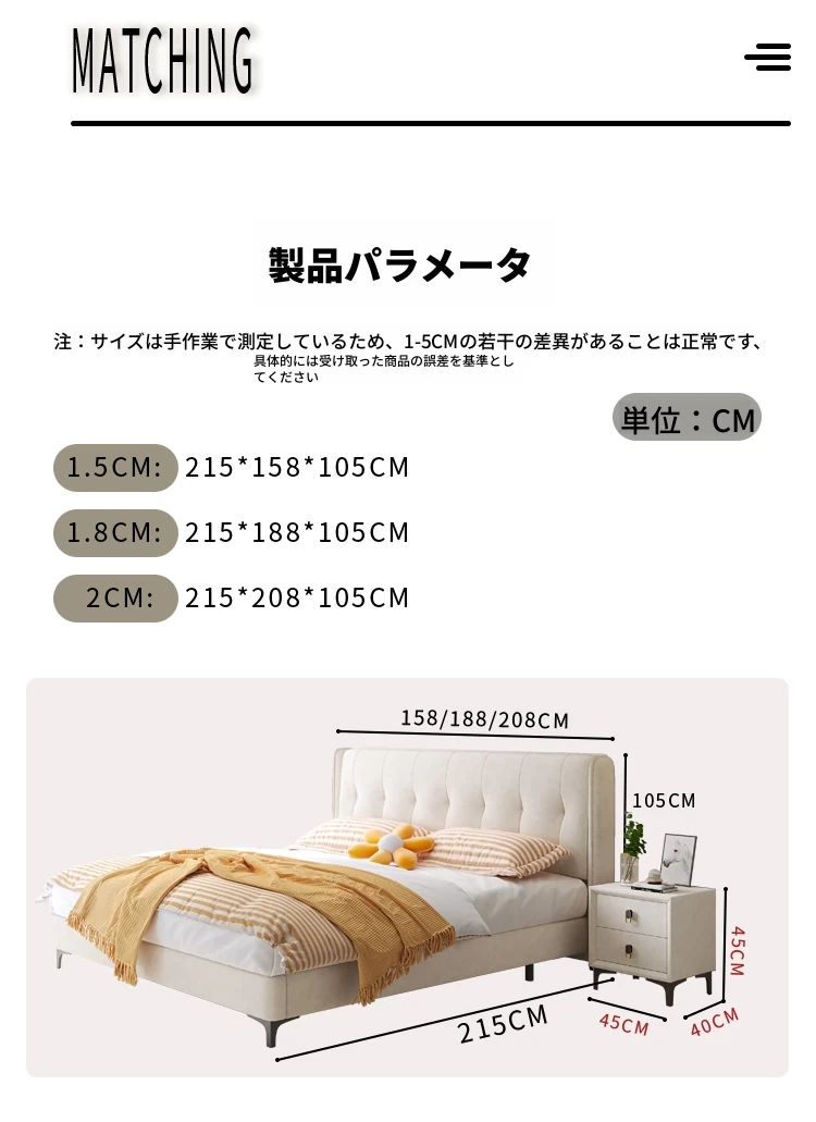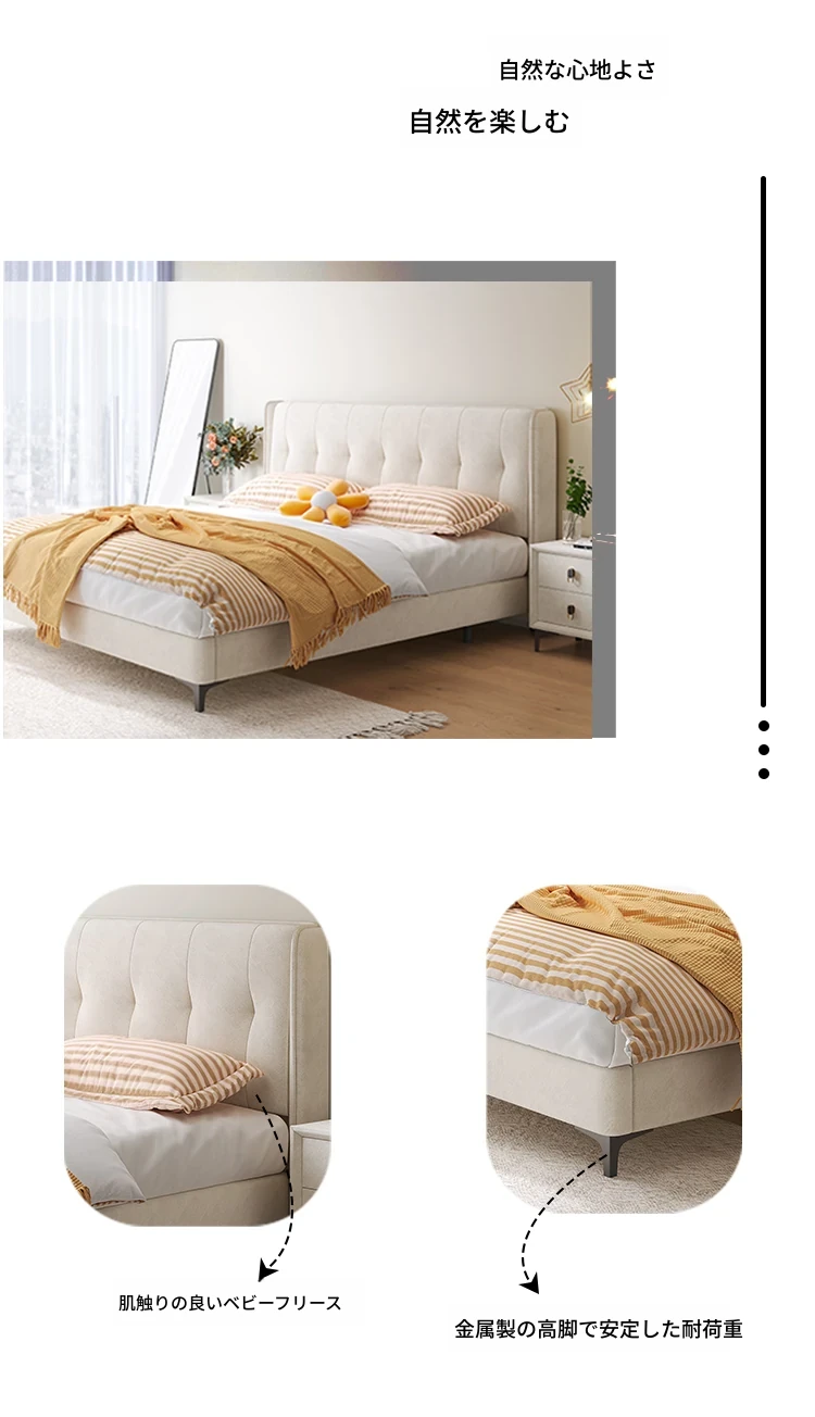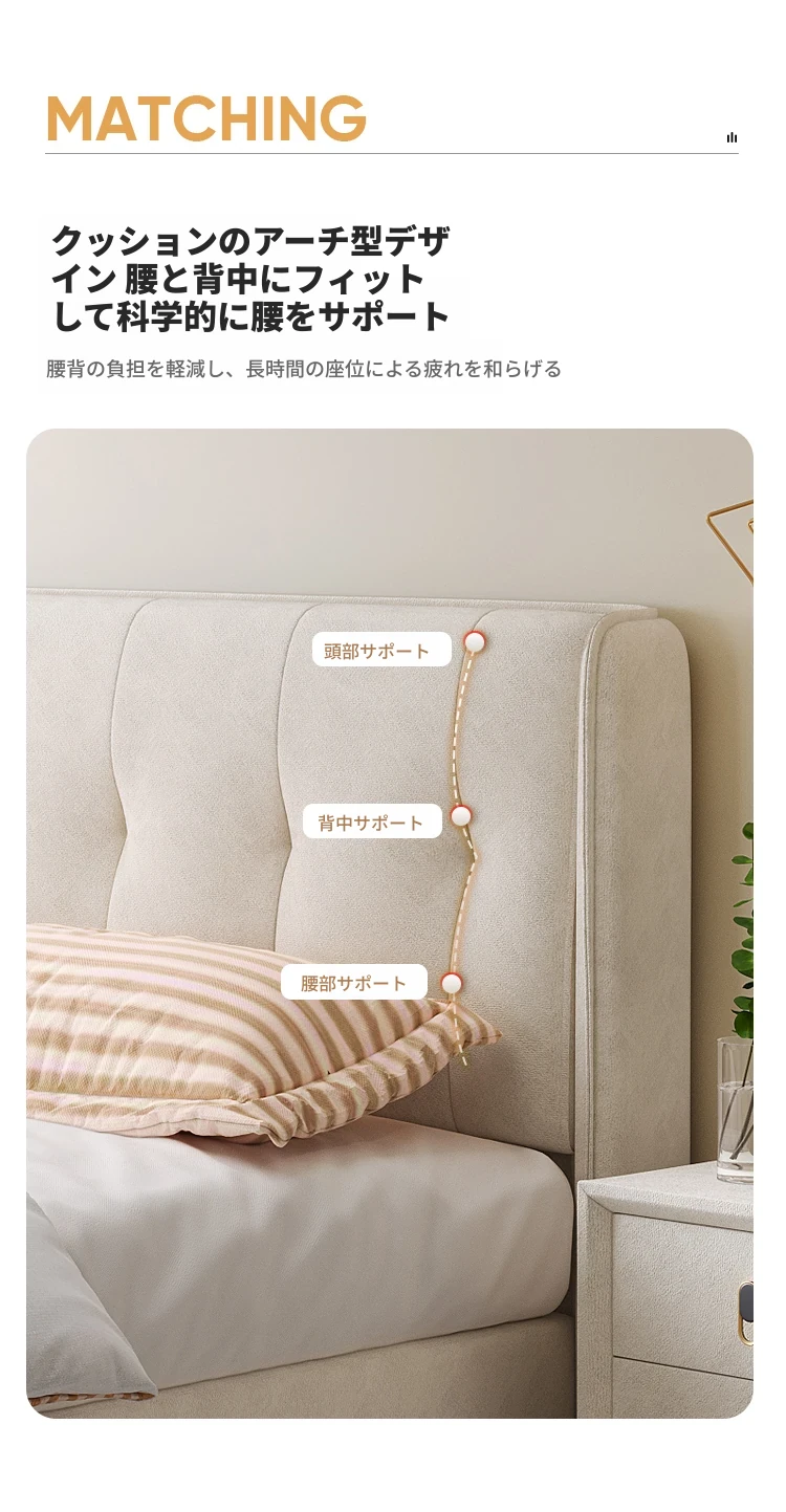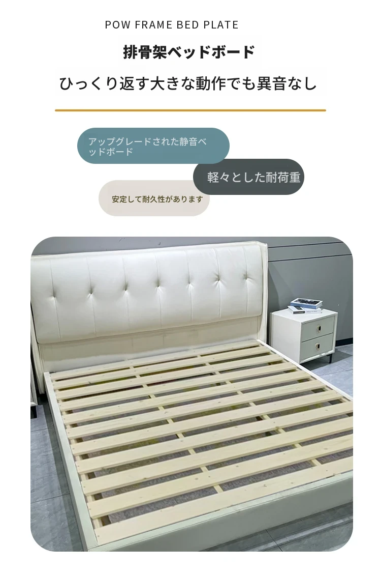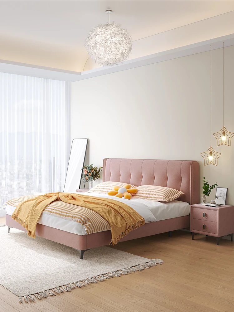 ラグジュアリーなクリームカラーの主寝室用1.8m大床!ソフトパッケージデザインで、赤ちゃんのような柔らかさを実現した新作の人気軽奢ダブルベッド。特別な夜を演出する、理想の婚礼ベッド!