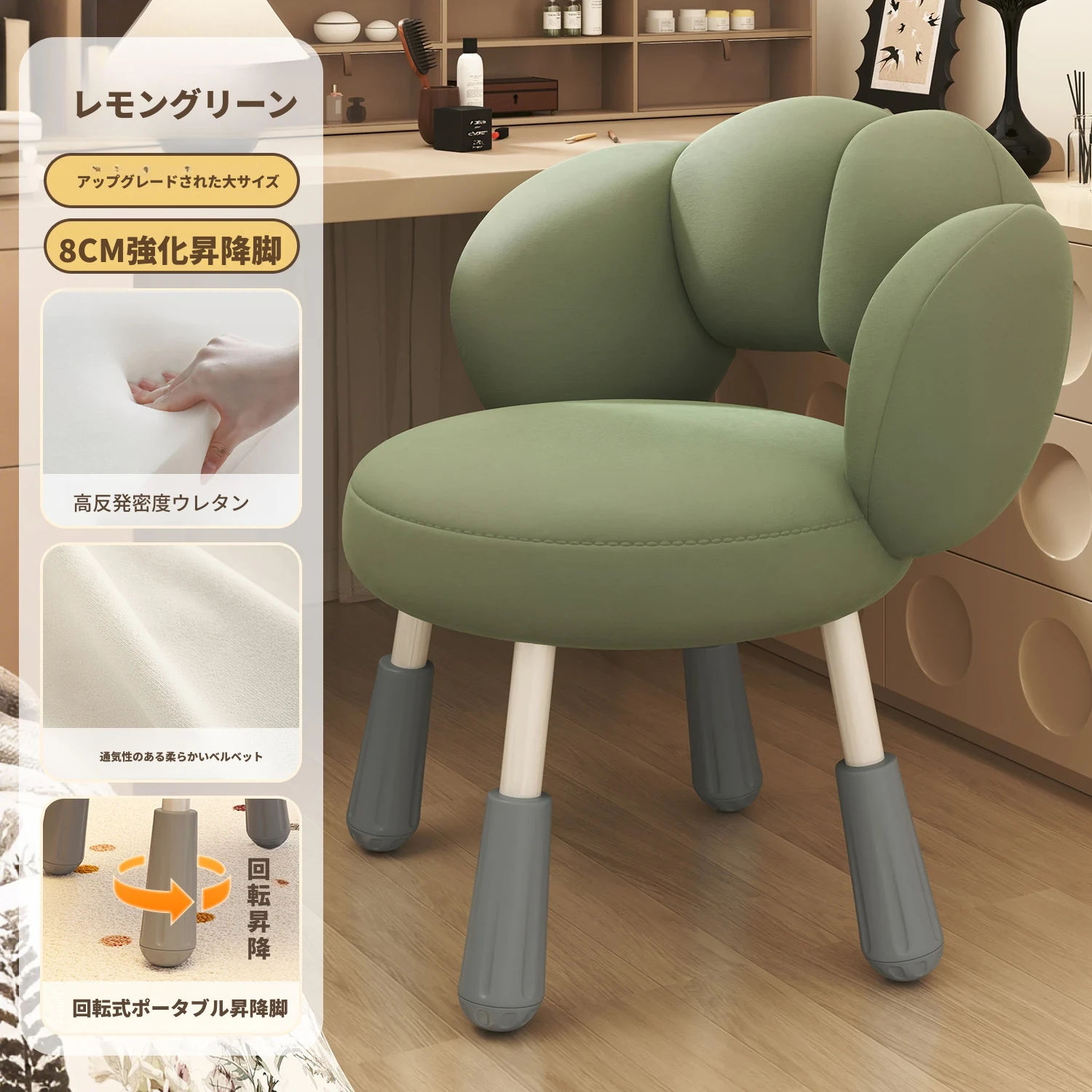 緑のベルベット+回転椅子脚