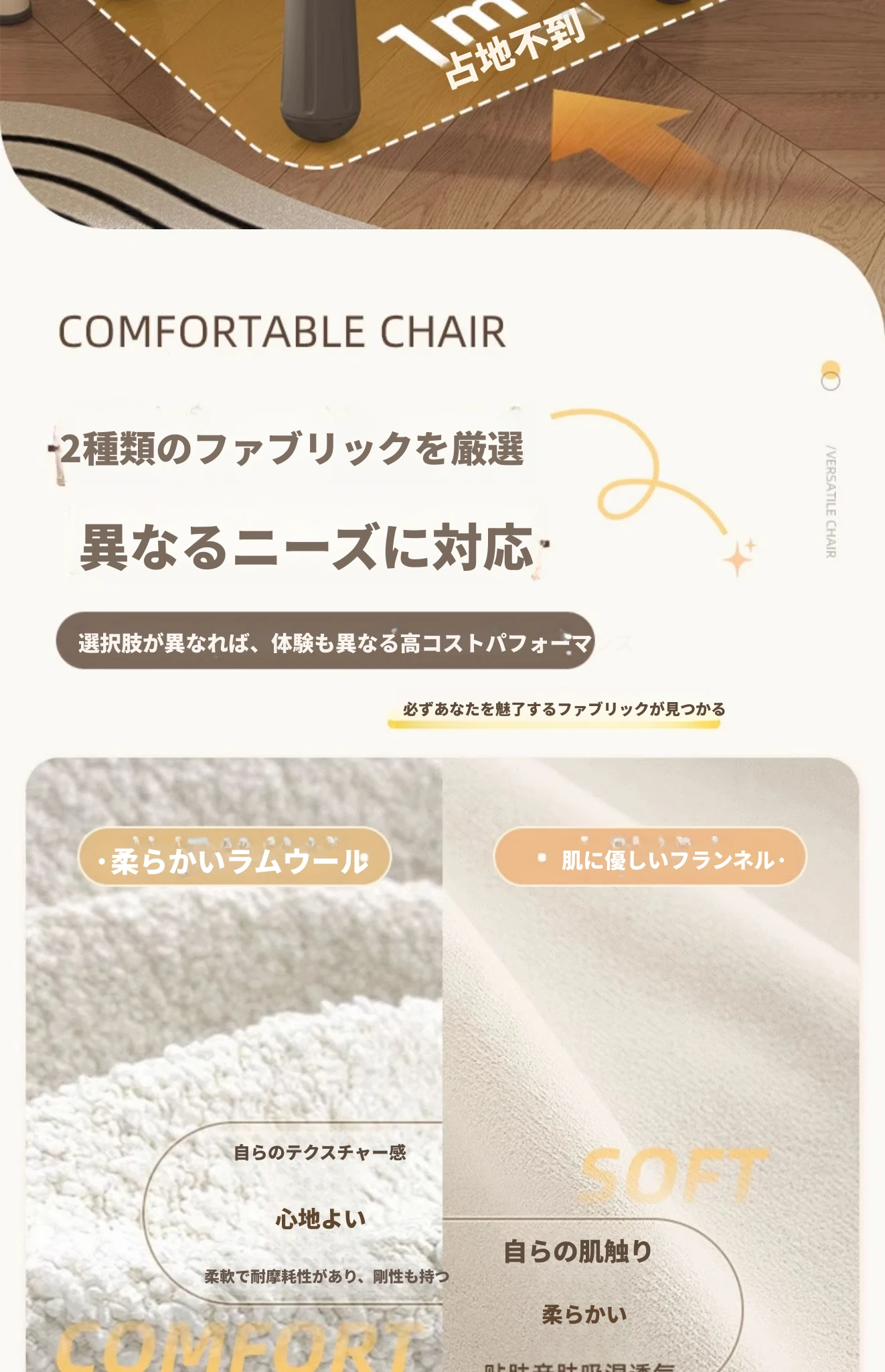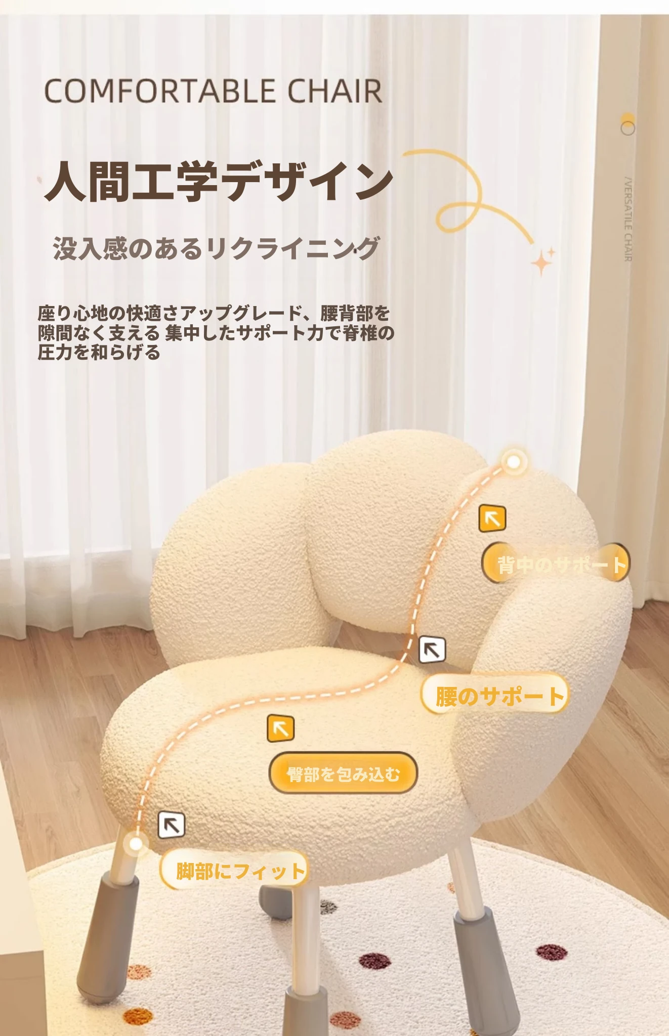 白のラムスキン+固定椅子脚