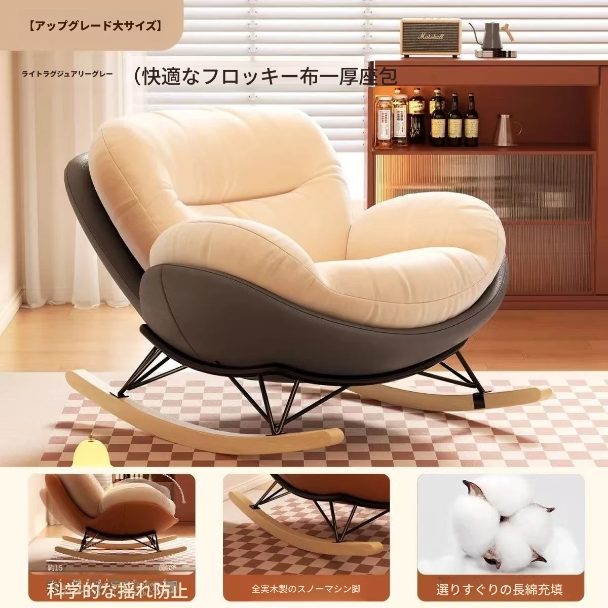イリスの揺れる椅子 - 大人向けのリラックスソファ!寝室やリビングに最適な一人用、ゆったりとしたデザインで快適な午後のひとときをお楽しみください。お昼寝にもぴったりな、居心地の良いくつろぎ空間を提供します。