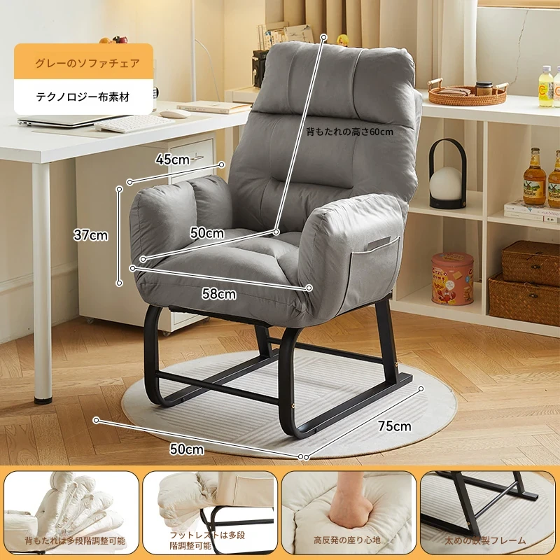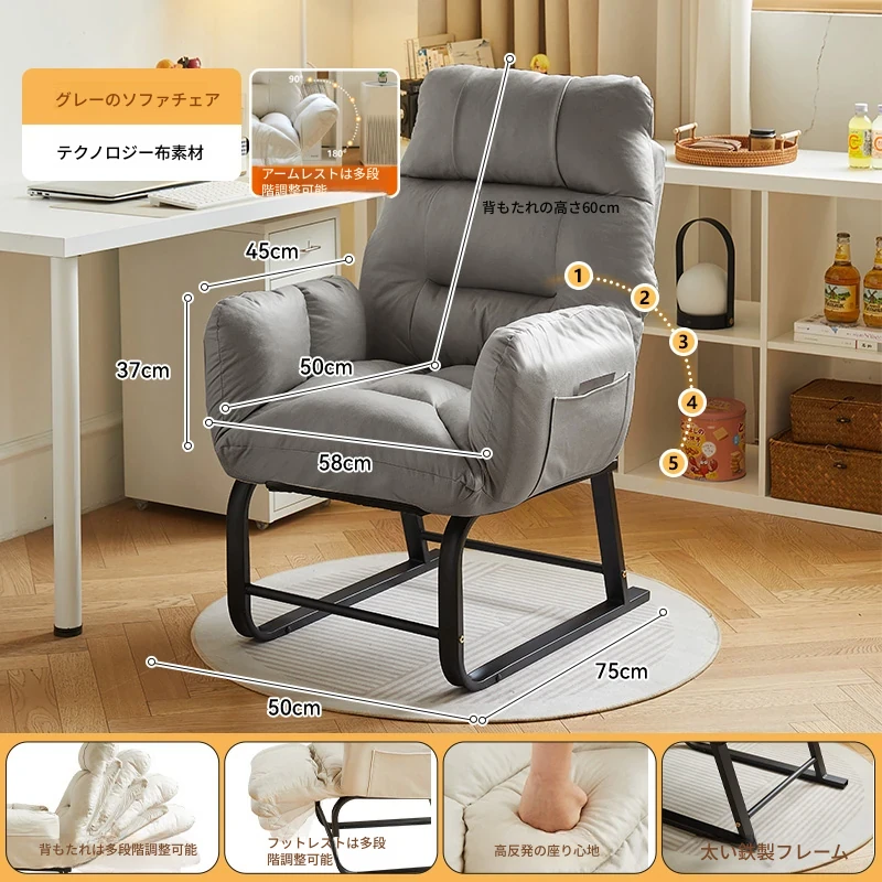 グレー【背もたれ調整可能+アームレスト5段階調整】
