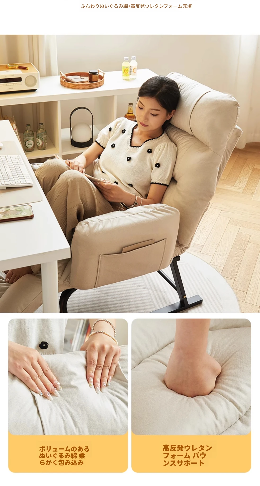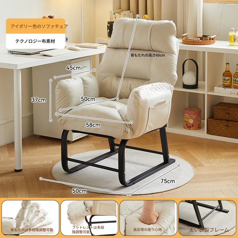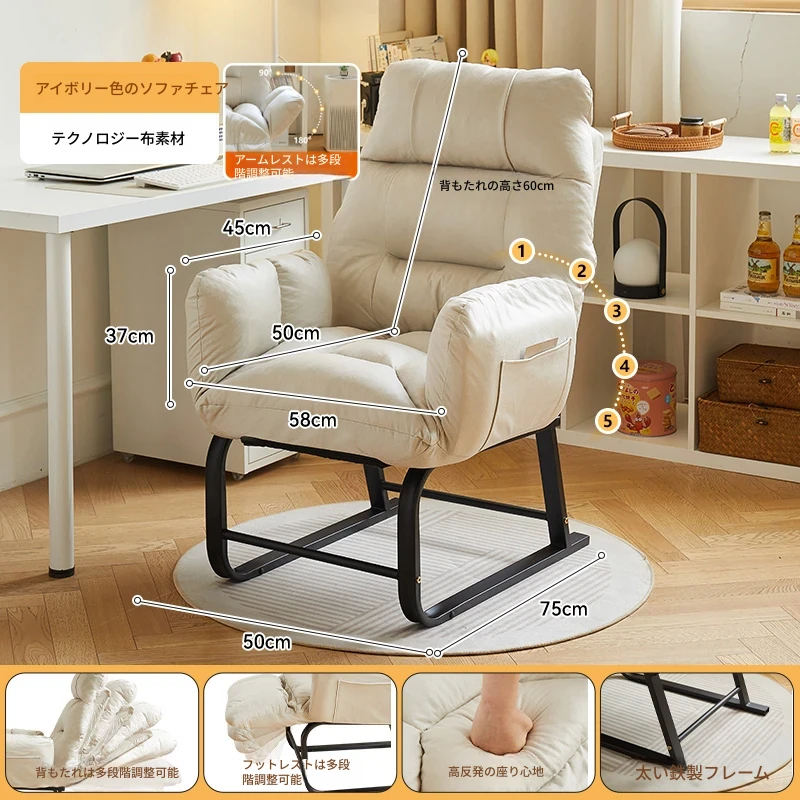 アイボリー【背もたれ調整可能+アームレスト5段階調整】