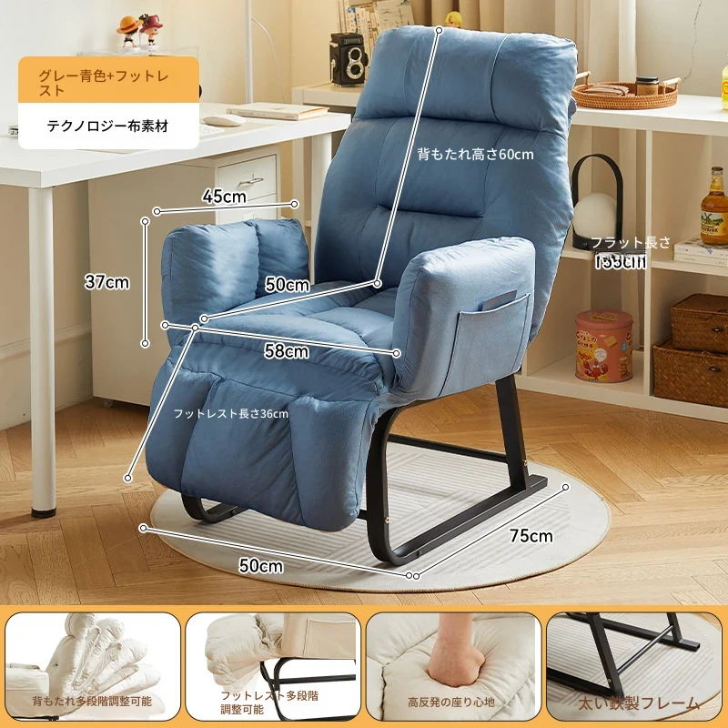 ブルー【背もたれ調整可能+フットレスト調整可能】