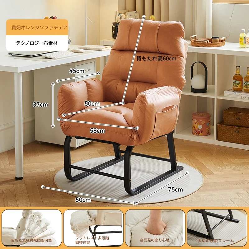 オレンジ【背もたれ調整可能+フットレスト調整可能】