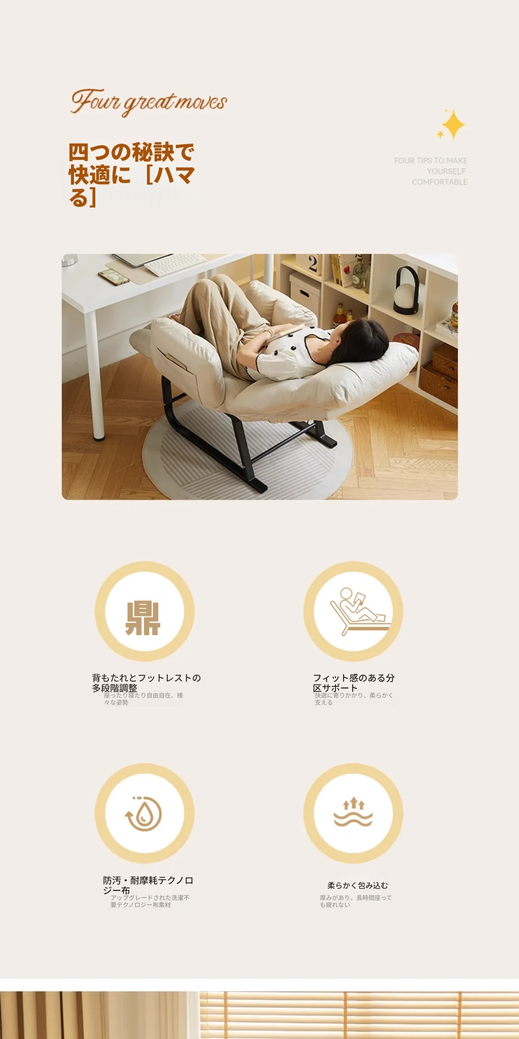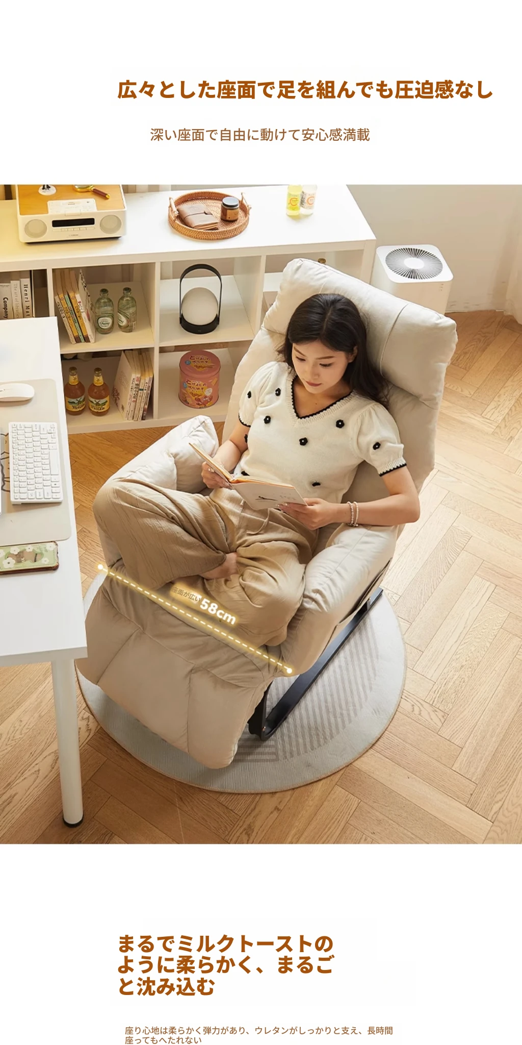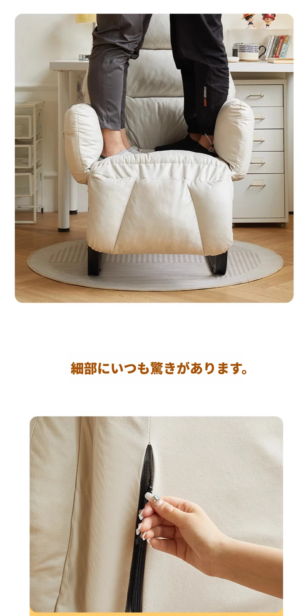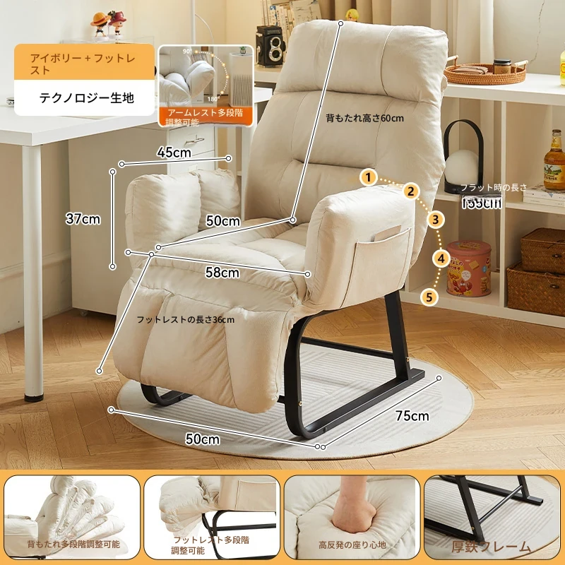 アイボリー【背もたれ調整可能+フットレスト調整可能+アームレスト5段階調整】