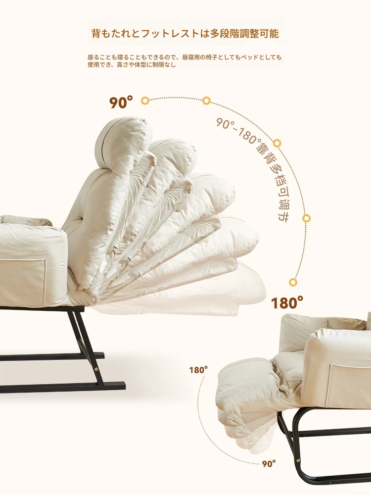折りたたみ式リクライニングチェア - 宿舎やバルコニーに最適!家庭用のシングルバックチェア、パソコン椅子としても使える多機能なリラックスソファ。お昼寝やくつろぎにぴったり!