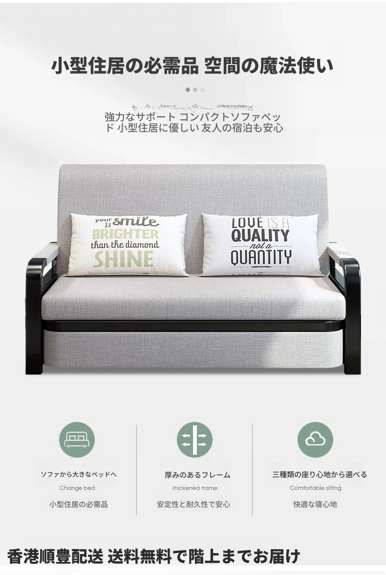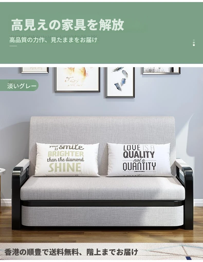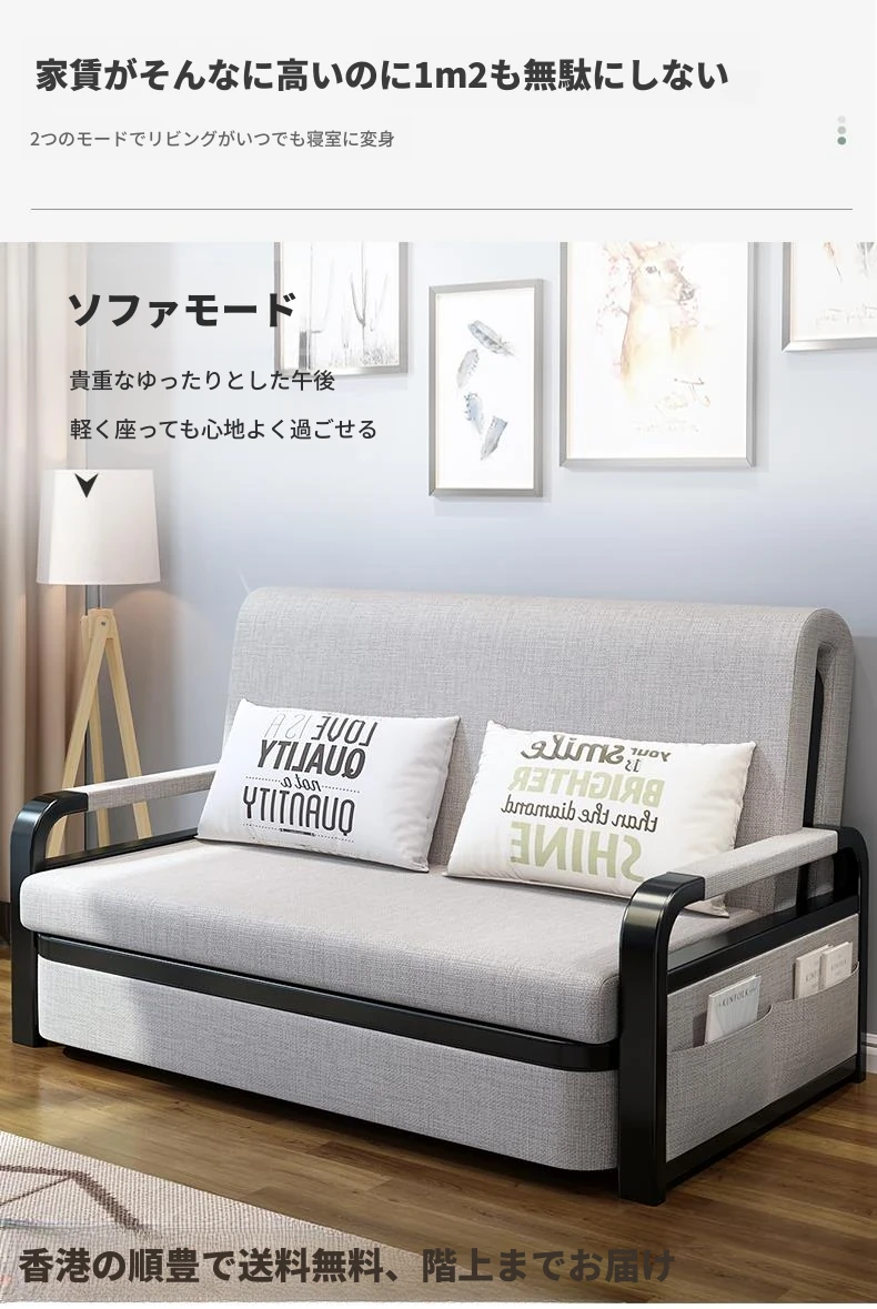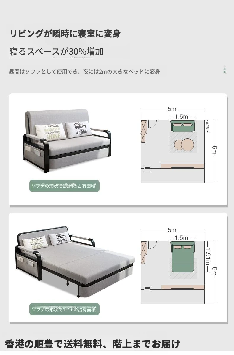 【香港送料無料】折りたたみソファベッド!多機能でコンパクトなデザイン、リビングにぴったりのダブルサイズ。人気のインスタ映えアイテムで、小さなスペースも有効活用!