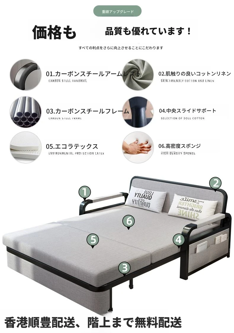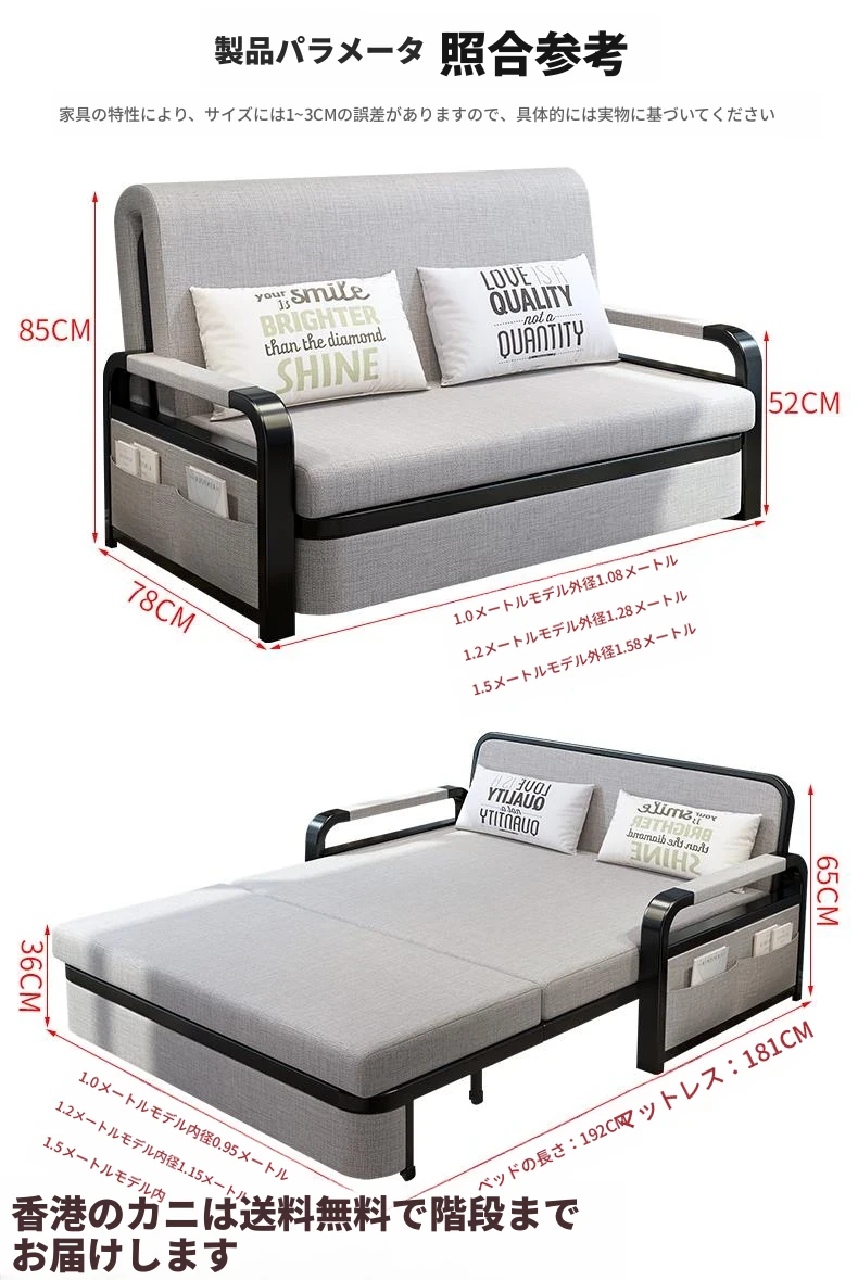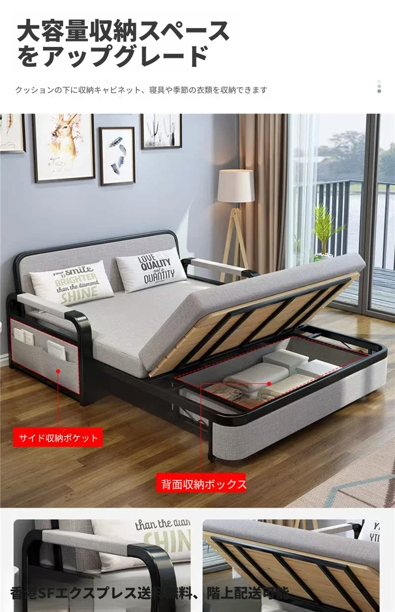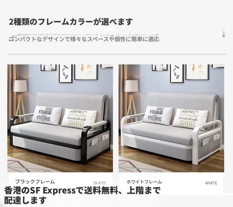 【香港送料無料】折りたたみソファベッド!多機能でコンパクトなデザイン、リビングにぴったりのダブルサイズ。人気のインスタ映えアイテムで、小さなスペースも有効活用!