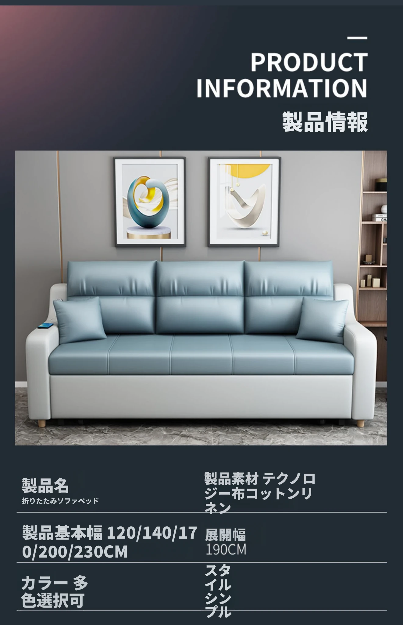 【香港送料無料】2WAY多機能ソファベッド!折りたたみ式で、小型リビングに最適。快適な座り心地と寝心地を両立した高品質なテクノロジー布製。限られたスペースでも大活躍!