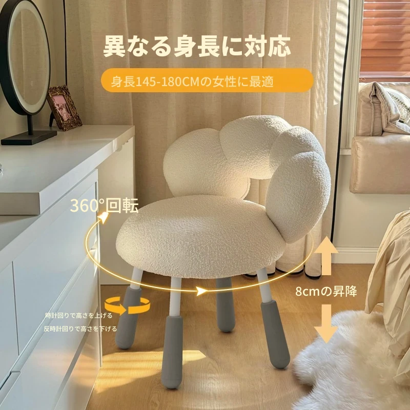 香港送料無料!クリーミーな風合いの化粧椅子 - 女性のための寝室用ドレッサー専用椅子。軽やかな贅沢感で、美容にも最適な一品!