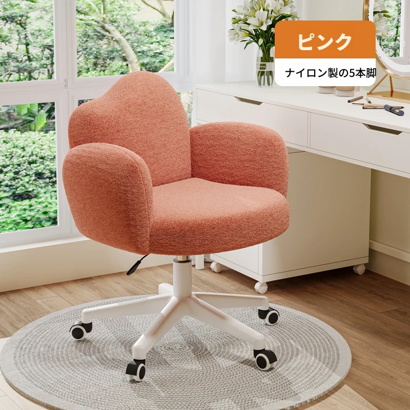 【ナイロン五爪脚】ドレッシングチェア-ピンク