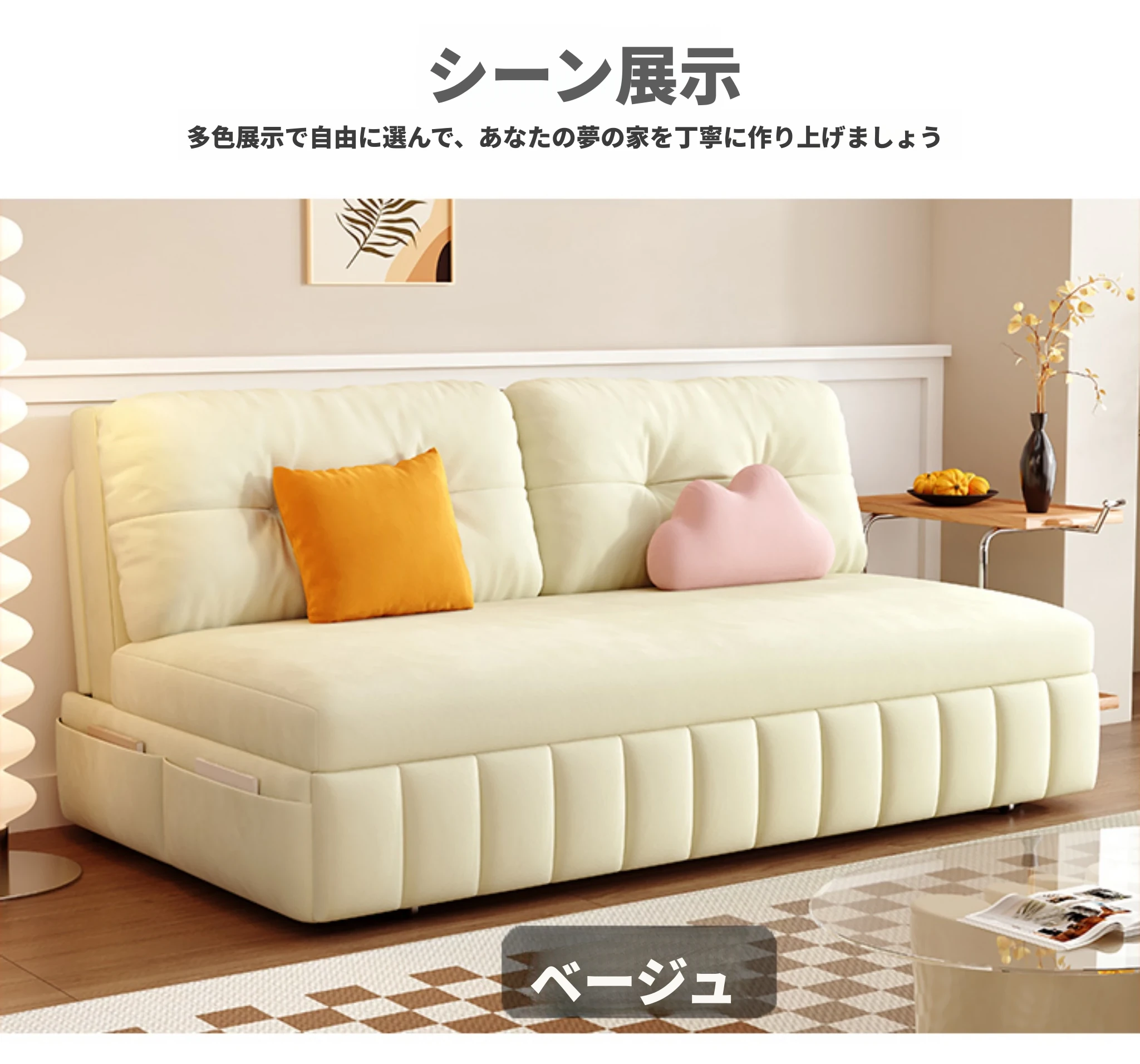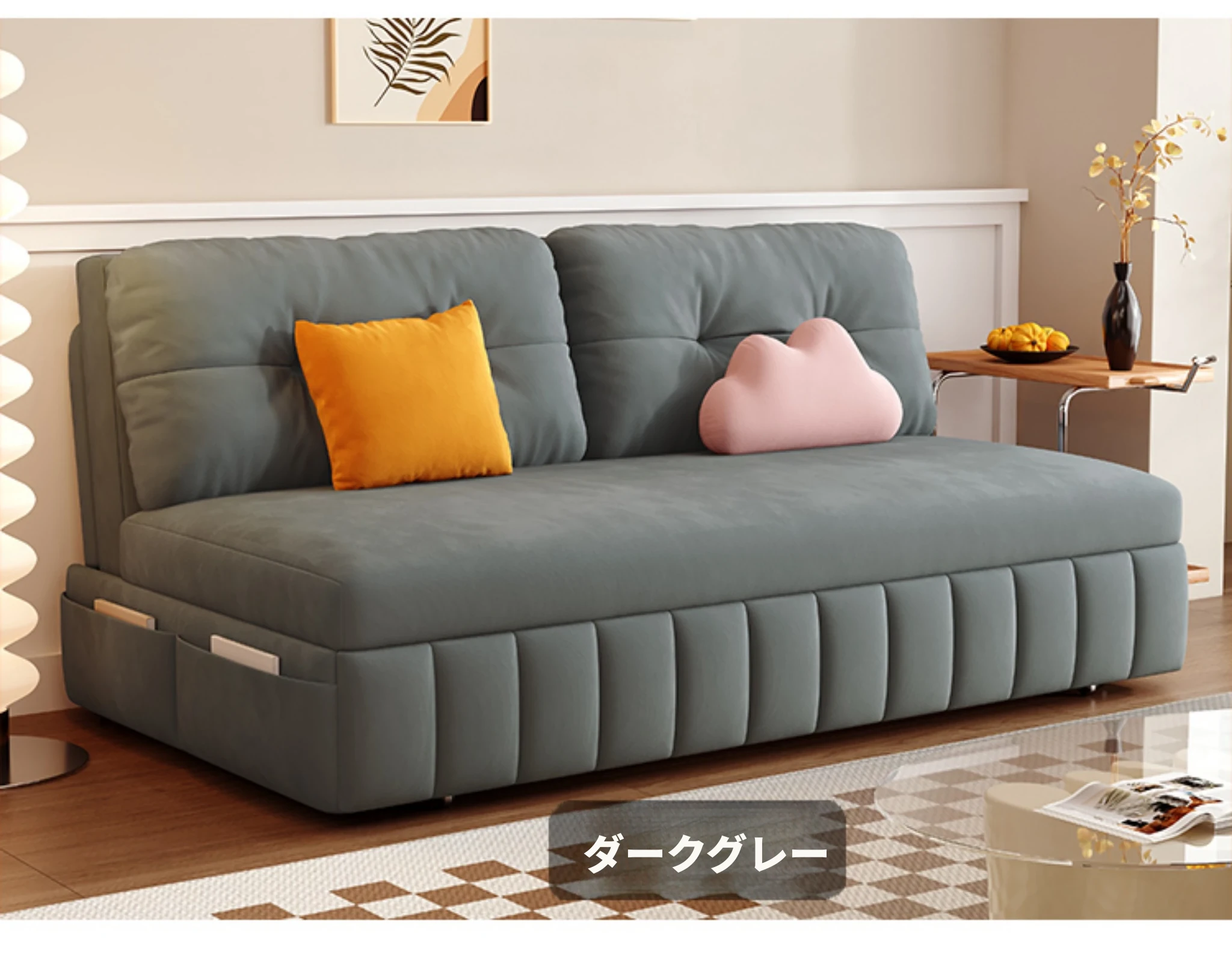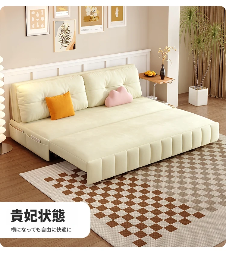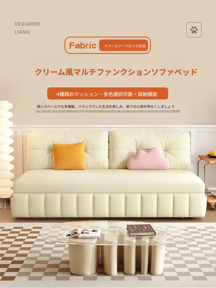 【香港送料無料】クリーミーな風合いのテクスチャーファブリック多機能ソファベッド!小さなリビングや寝室にぴったりのスタイリッシュなデザインで、快適さと実用性を兼ね備えています。あなたの家に最適なアイテムです!