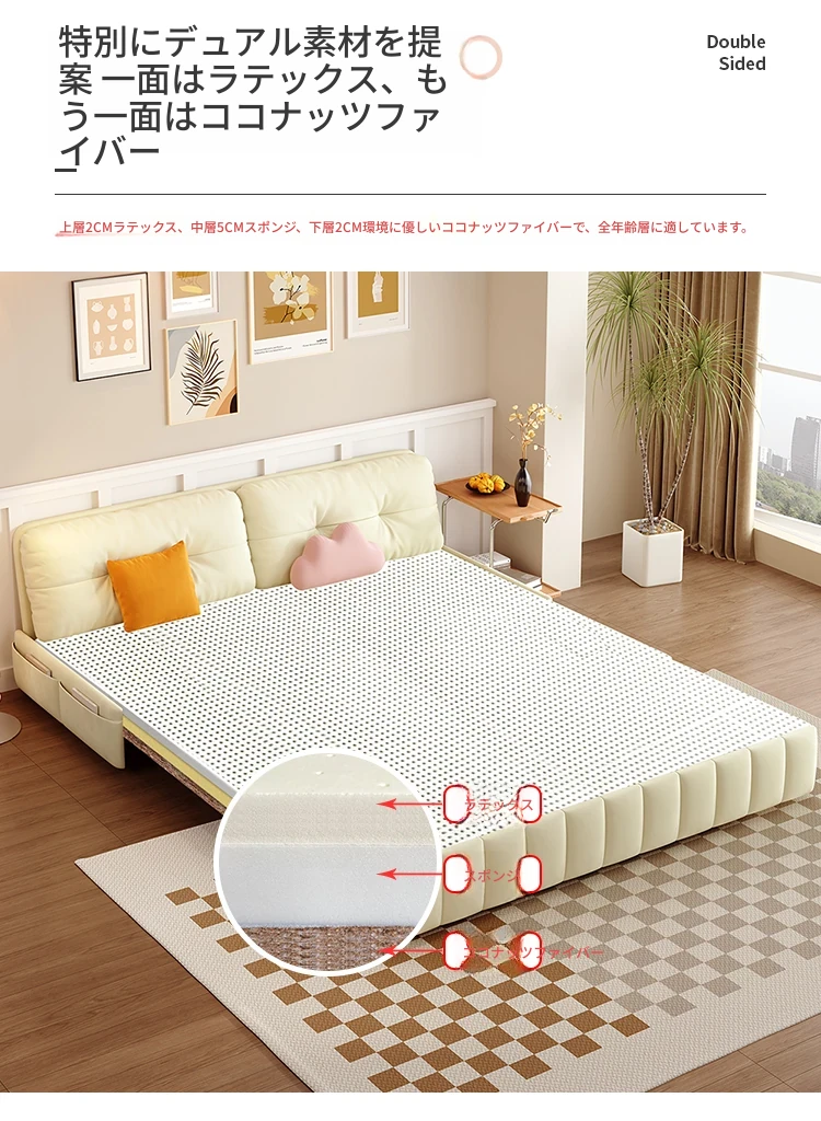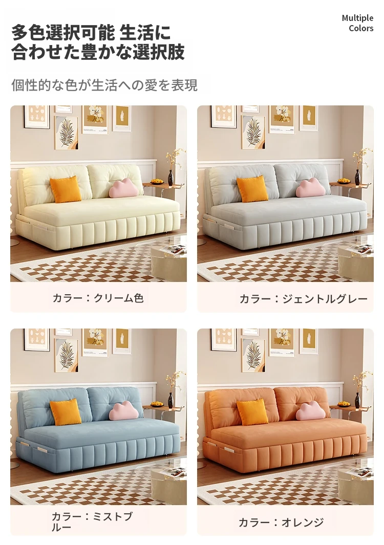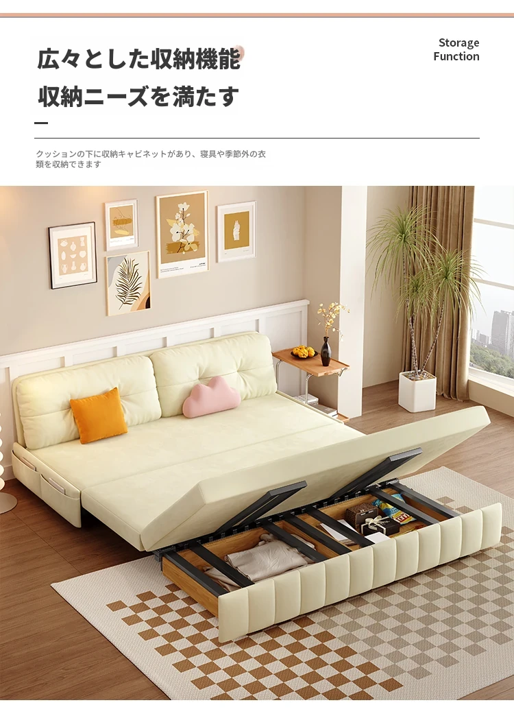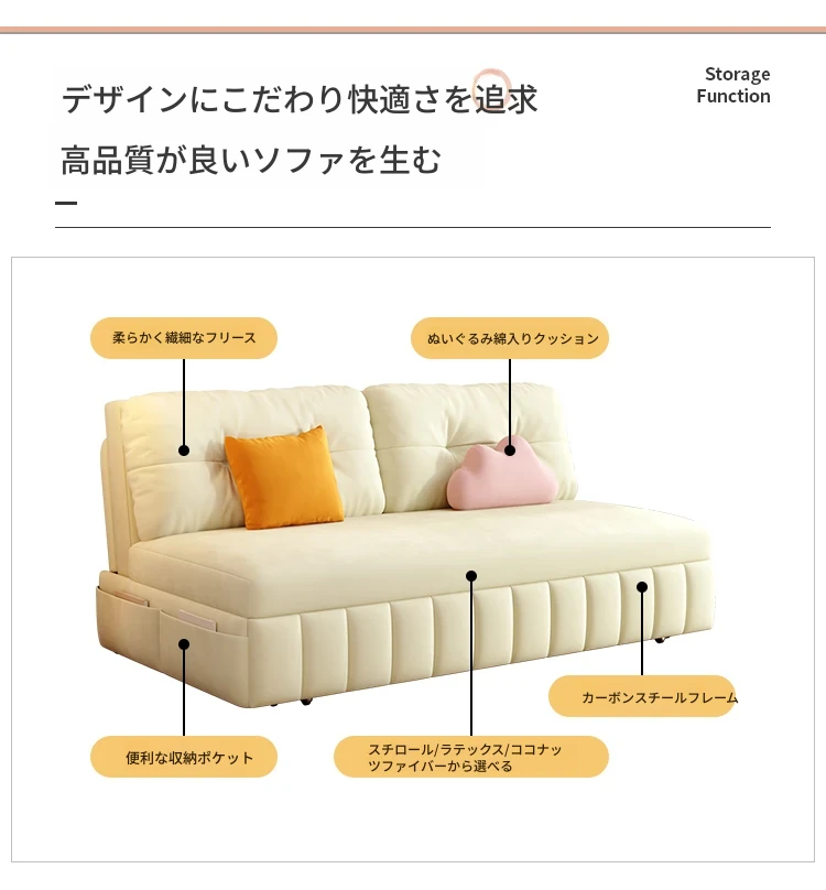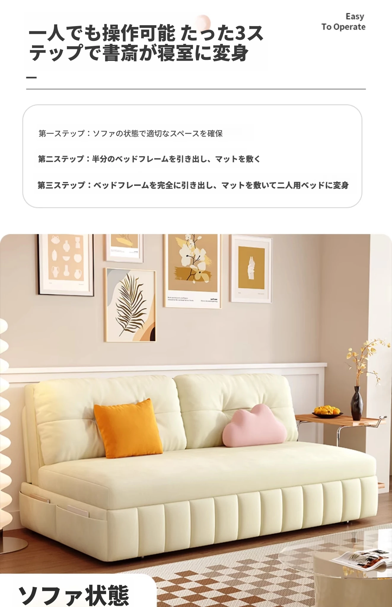 【香港送料無料】クリーミーな風合いのテクスチャーファブリック多機能ソファベッド!小さなリビングや寝室にぴったりのスタイリッシュなデザインで、快適さと実用性を兼ね備えています。あなたの家に最適なアイテムです!