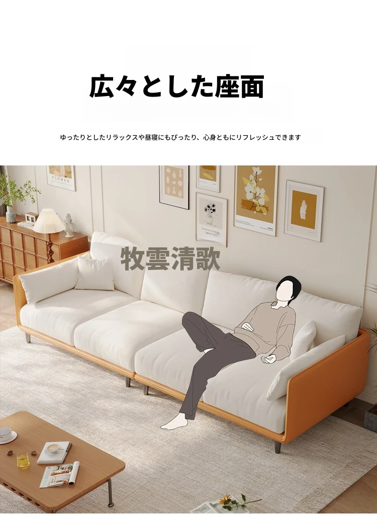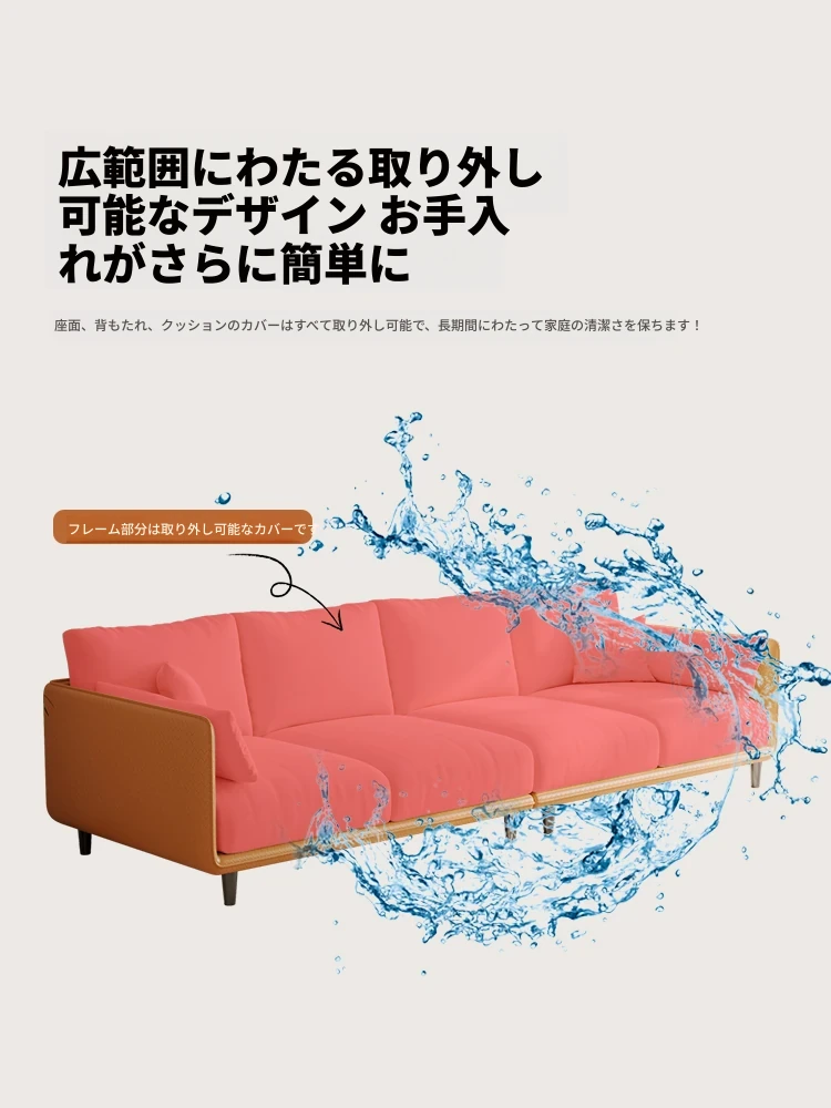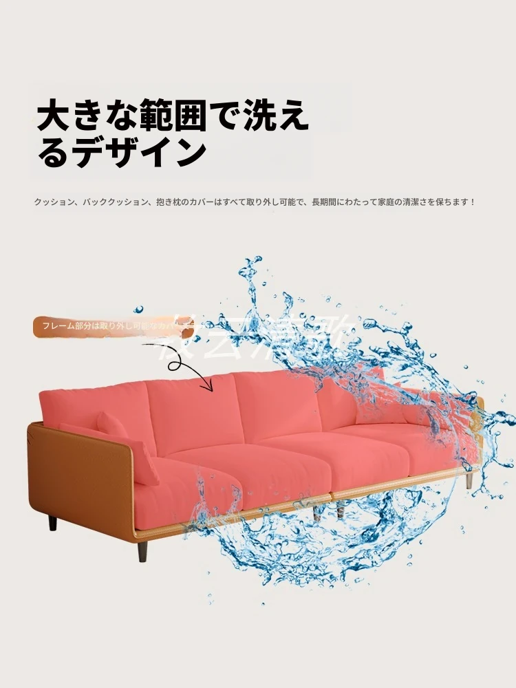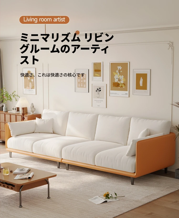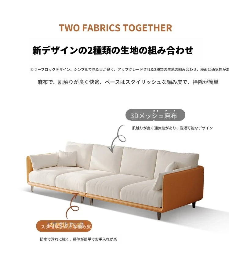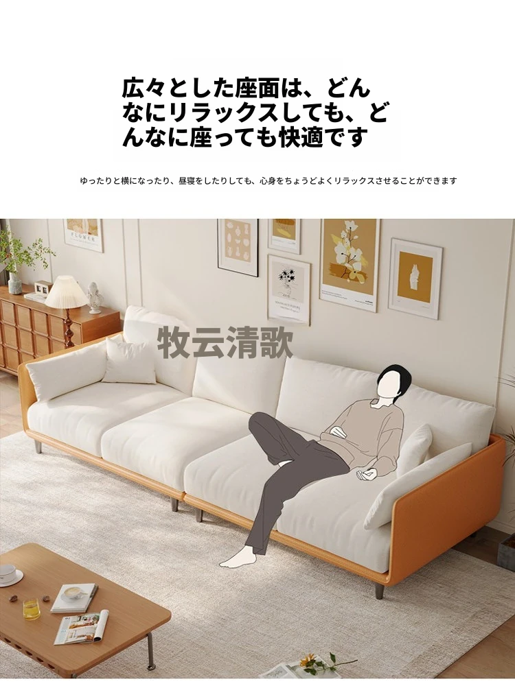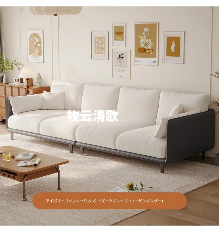 フランス風クリーミーなデザインの洗えるリビングソファ!現代的でシンプルな小型アパートや民宿にぴったりなストレート布製ソファ。快適さとスタイリッシュさを両立させたおしゃれなインテリアを実現!